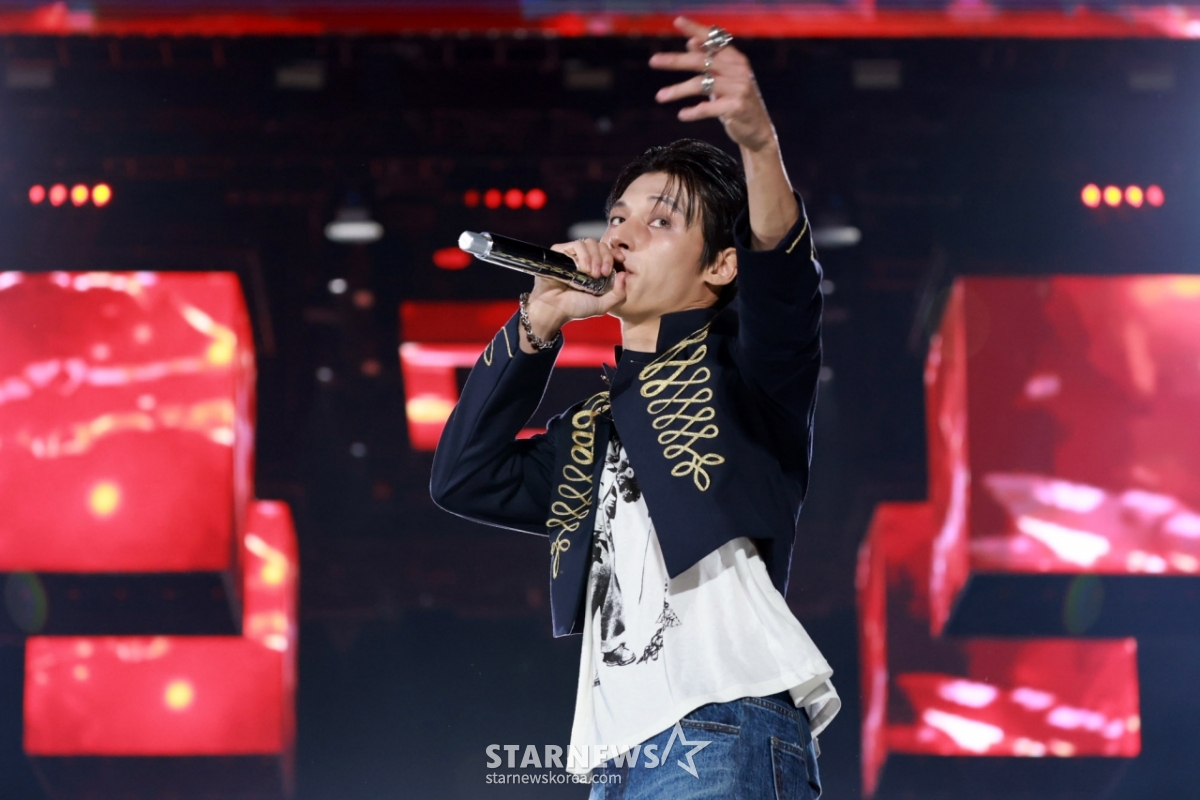 그룹 에이티즈 우영이 7일 가오슝 내셔널 스타디움에서 진행된 스타뉴스 주최 '10주년 아시아 아티스트 어워즈 2025(10th Anniversary Asia Artist Awards 2025, '10주년 AAA 2025')를 기념하는 'ACON 2025'에서 멋진 무대를 선보이고 있다.