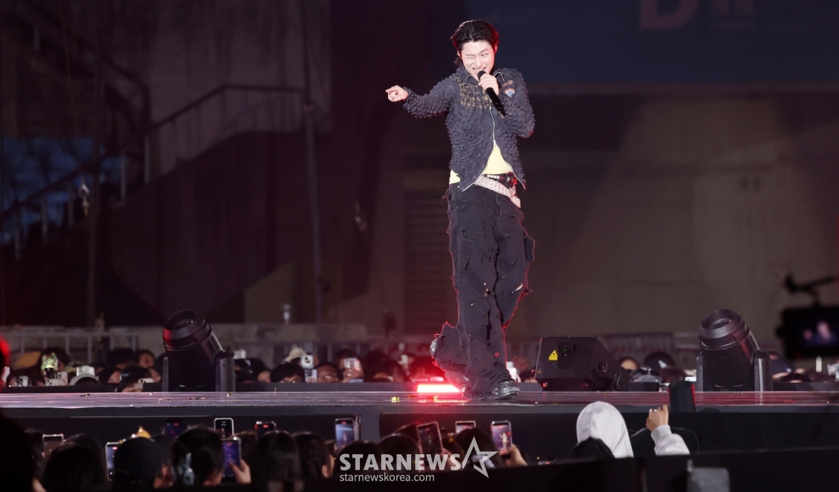 가수 우즈가 7일 가오슝 내셔널 스타디움에서 진행된 스타뉴스 주최 '10주년 아시아 아티스트 어워즈 2025(10th Anniversary Asia Artist Awards 2025, '10주년 AAA 2025')를 기념하는 'ACON 2025'에서 멋진 무대를 선보이고 있다.