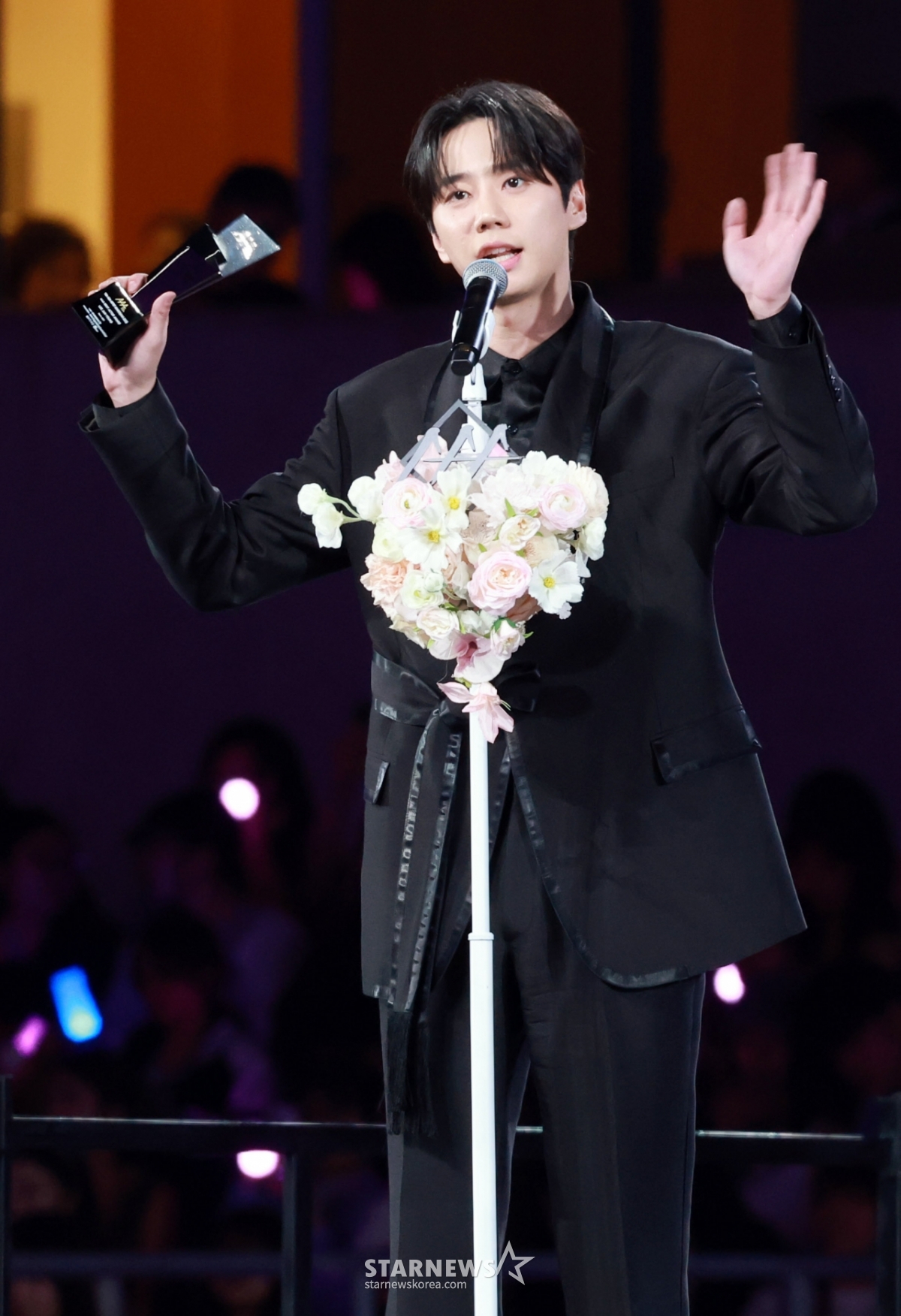 배우 이준영이 6일 가오슝 내셔널 스타디움에서 진행된 스타뉴스 주최 '10주년 아시아 아티스트 어워즈 2025(10th Anniversary Asia Artist Awards 2025, '10주년 AAA 2025')에서 AAA 베스트엑터 상 수상소감을 전하고 있다.