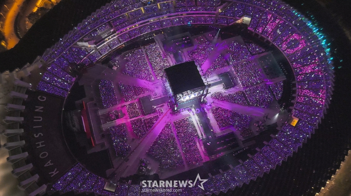 지난 6일 5만 5천명의 관객이 참여한 스타뉴스 주최 '10주년 아시아 아티스트 어워즈 2025(10th Anniversary Asia Artist Awards 2025, '10주년 AAA 2025')가 진행된 가오슝 내셔널 스타디움의 전경.