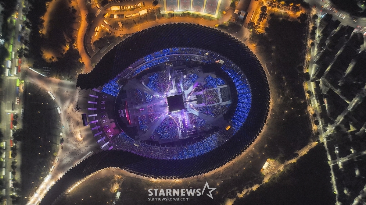 지난 6일 5만 5천명의 관객이 참여한 스타뉴스 주최 '10주년 아시아 아티스트 어워즈 2025(10th Anniversary Asia Artist Awards 2025, '10주년 AAA 2025')가 진행된 가오슝 내셔널 스타디움의 전경.