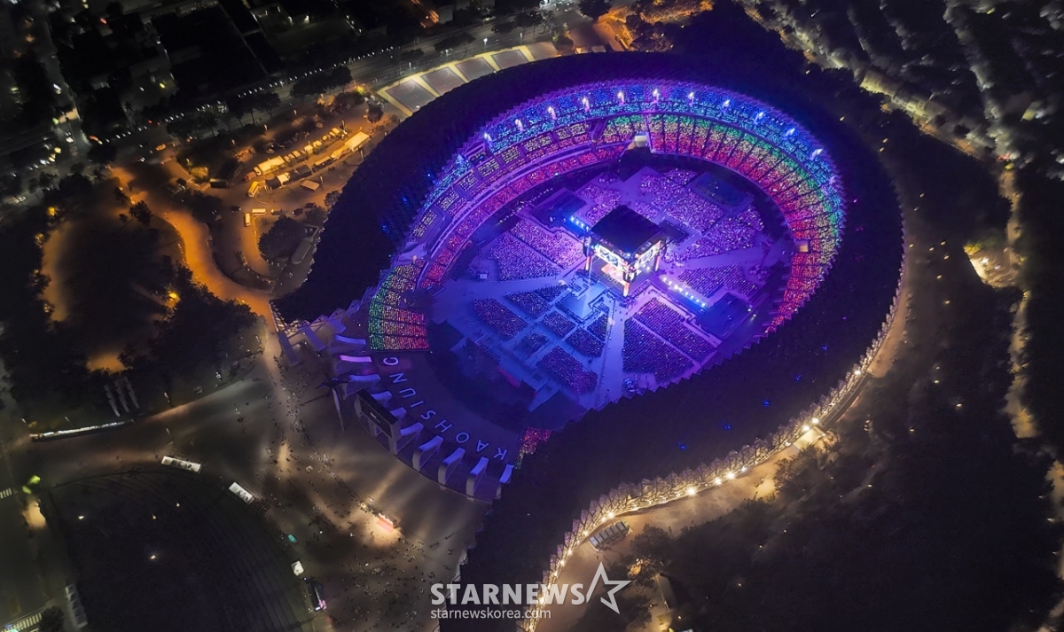 지난 6일 5만 5천명의 관객이 참여한 스타뉴스 주최 '10주년 아시아 아티스트 어워즈 2025(10th Anniversary Asia Artist Awards 2025, '10주년 AAA 2025')가 진행된 가오슝 내셔널 스타디움의 전경.