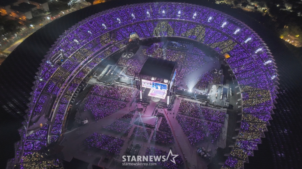 지난 6일 5만 5천명의 관객이 참여한 스타뉴스 주최 '10주년 아시아 아티스트 어워즈 2025(10th Anniversary Asia Artist Awards 2025, '10주년 AAA 2025')가 진행된 가오슝 내셔널 스타디움의 전경.