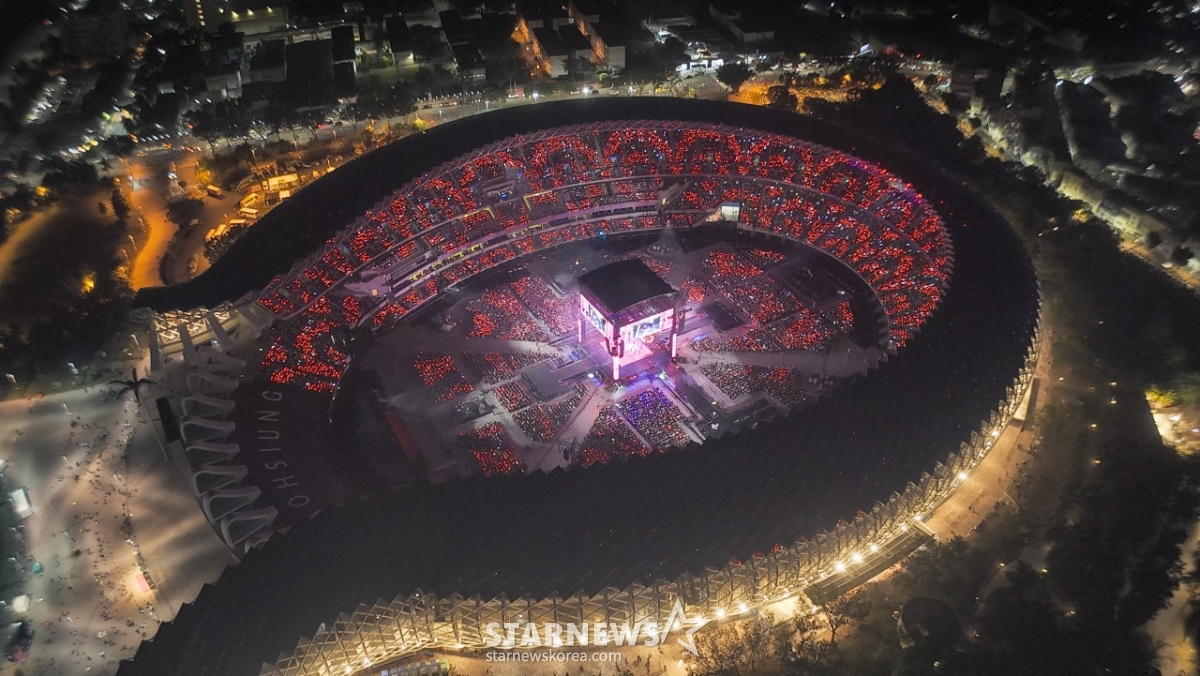 지난 6일 5만 5천명의 관객이 참여한 스타뉴스 주최 '10주년 아시아 아티스트 어워즈 2025(10th Anniversary Asia Artist Awards 2025, '10주년 AAA 2025')가 진행된 가오슝 내셔널 스타디움의 전경.