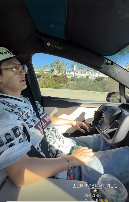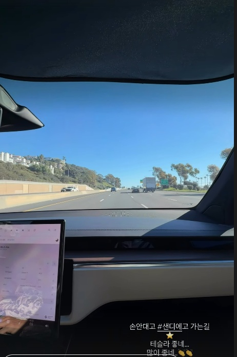 이다해 역시 조수석에서 세븐과 함께 노래를 부르며 "손 안 대고 샌디에고 가는 길. 테슬라 좋네. 많이 좋네"라며 감탄했다.
