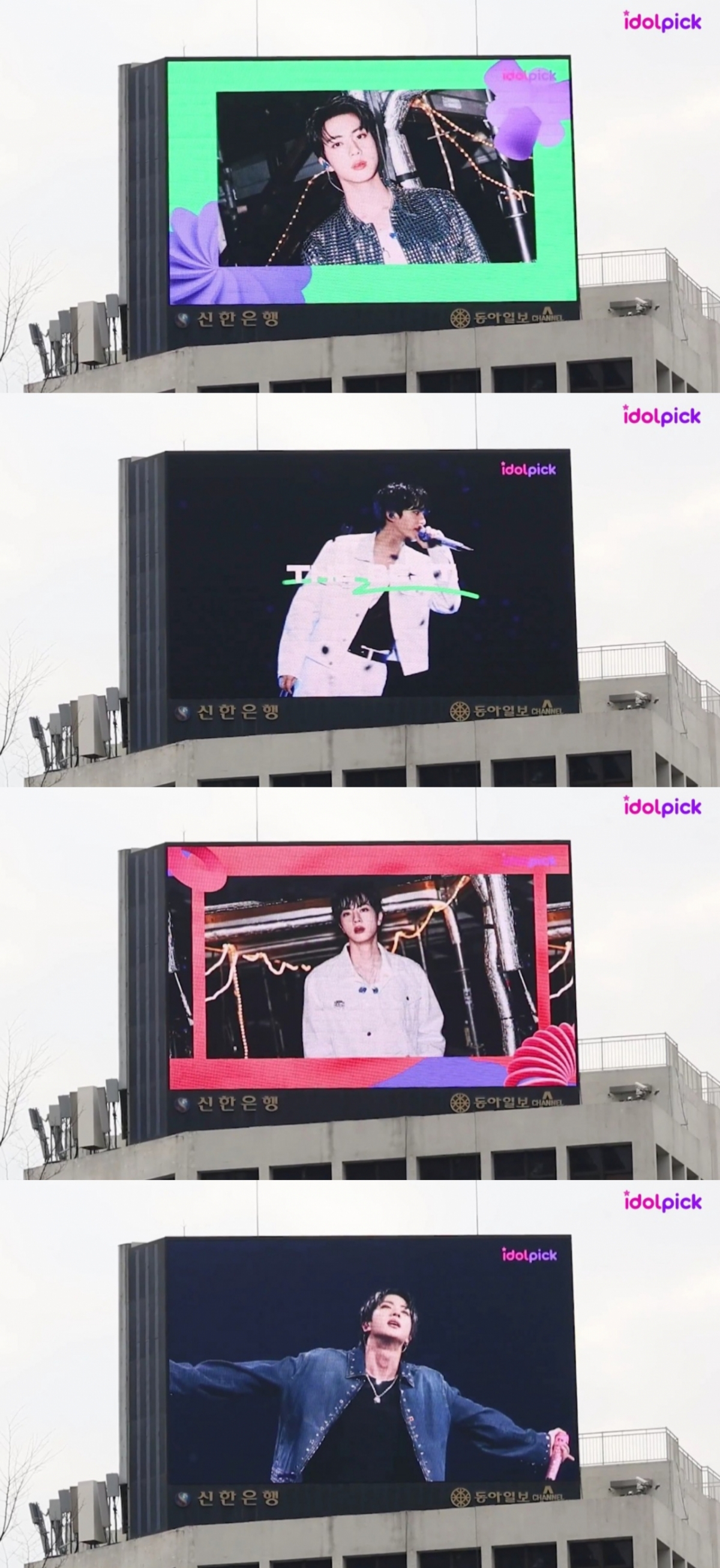 아이돌픽은 2주간의 위클리 투표 결과를 합산해 최다 득표 상위 5명(또는 팀)을 대상으로 초대형 전광판 서포트를 진행한다. 진은 11월 4주차와 12월 1주차 득표수를 합산해 총 12만 9192픽을 기록하며 168회차 전광판 서포트 최다 득표자로 선정됐다. 해당 광고는 12월 18일부터 20일까지 3일간 서울 중구 롯데에비뉴엘 맞은편 초대형 전광판을 통해 공개될 예정이다.