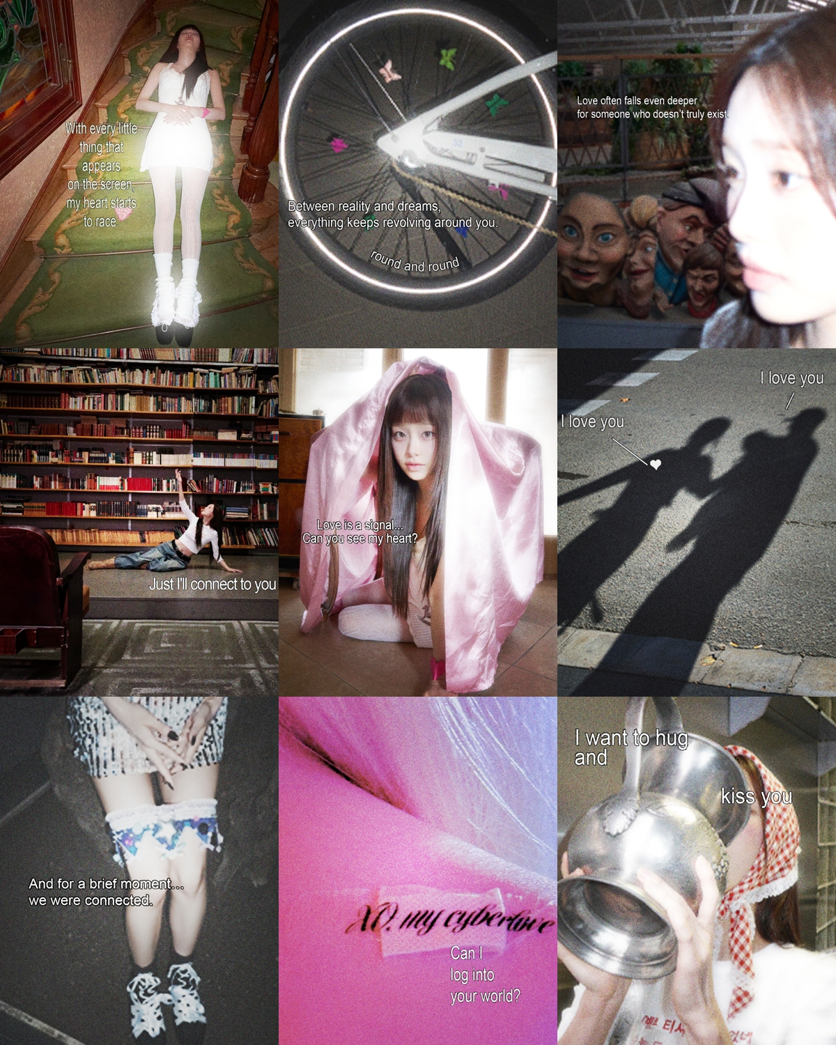 특히 이미지 위에 덧입혀진 'With every little thing that appears on the screen, my heart starts to race', 'Just I'll connect to you', 'Love often falls even deeper for someones who doesn't truly exist', 'Can I log into your world?' 등의 문구는 앨범명 'XO, my cyberlove'에 내포된 의미를 직관적으로 드러낸다. 디지털적 언어로 표현된 감정의 조각들은 앞서 공개된 티저에서 보여준 전자적인 무드 속 인간적인 온기를 잇는 장치로, 현실과 비현실의 경계에 놓인 현대적 관계를 은유적으로 풀어낼 서사를 예고한다.