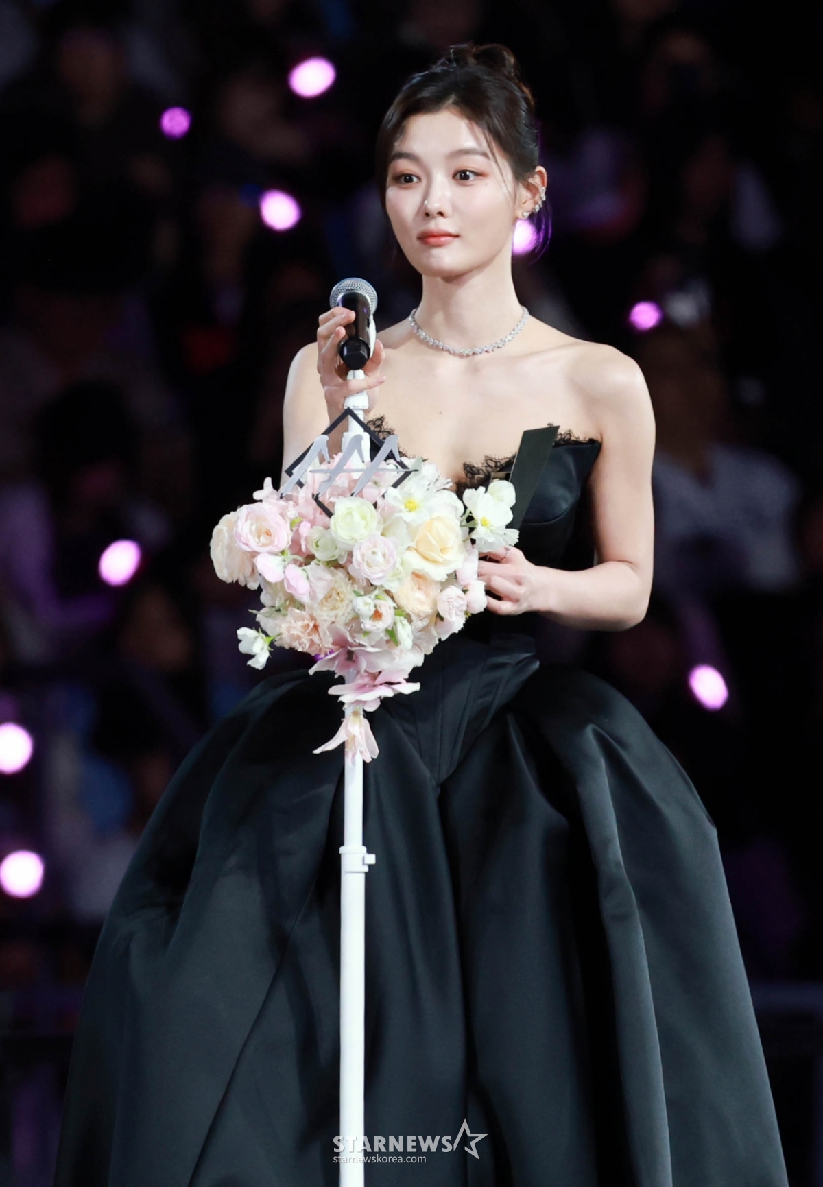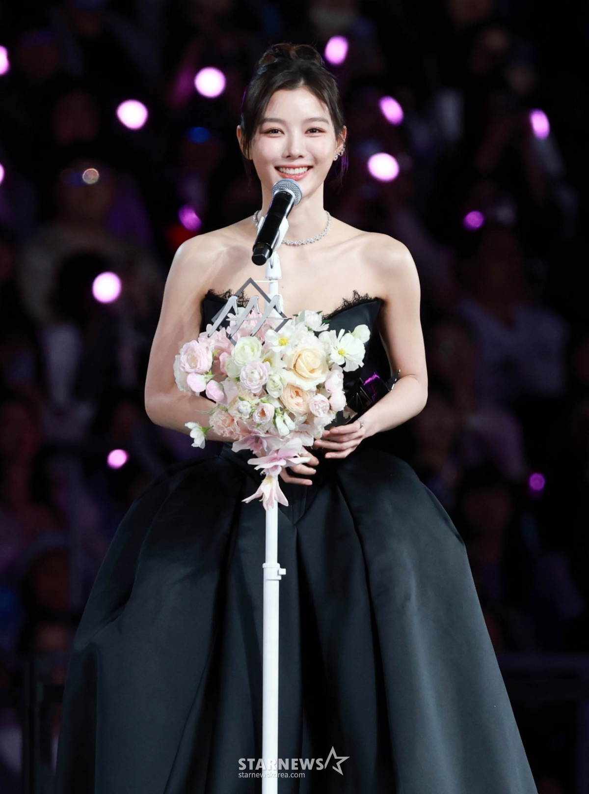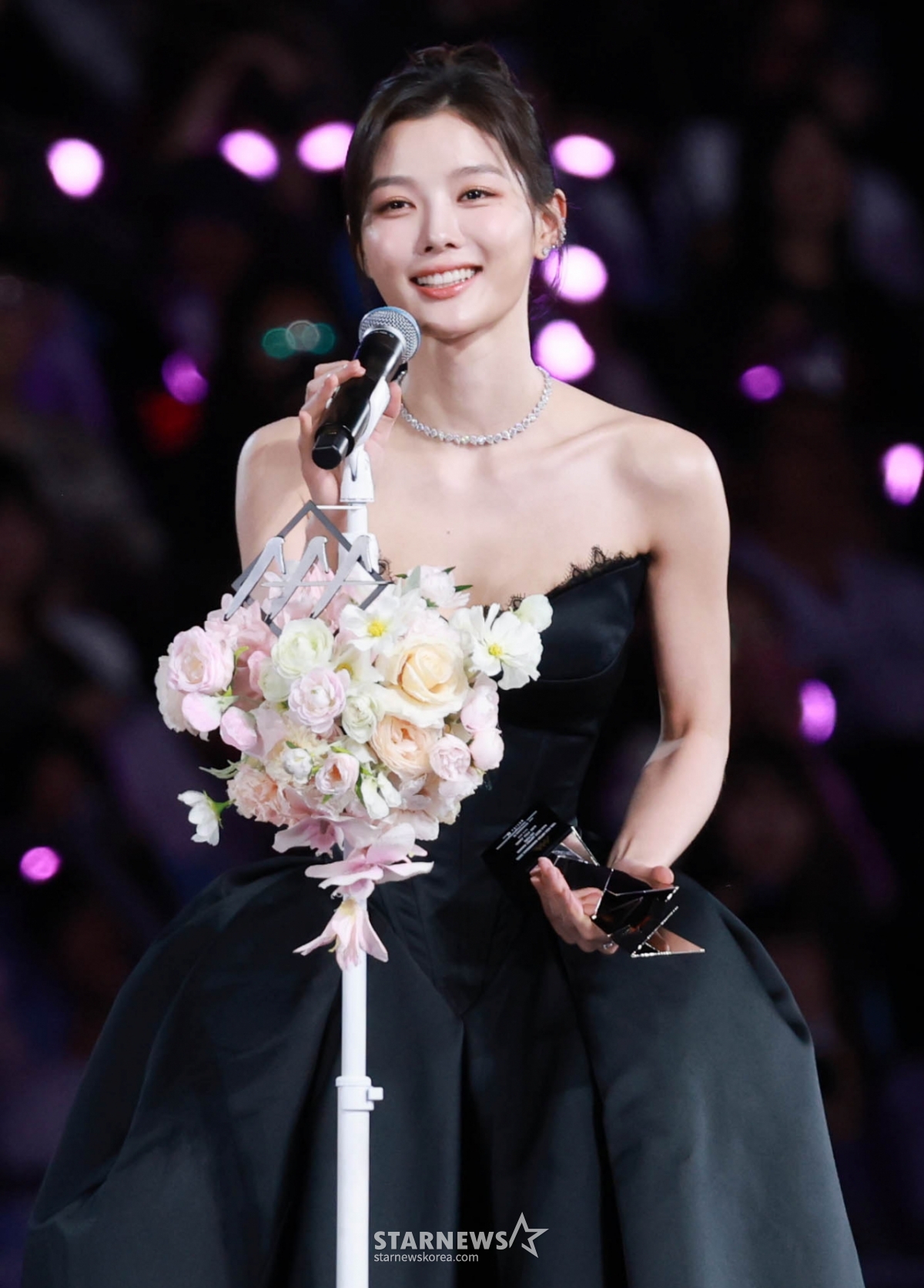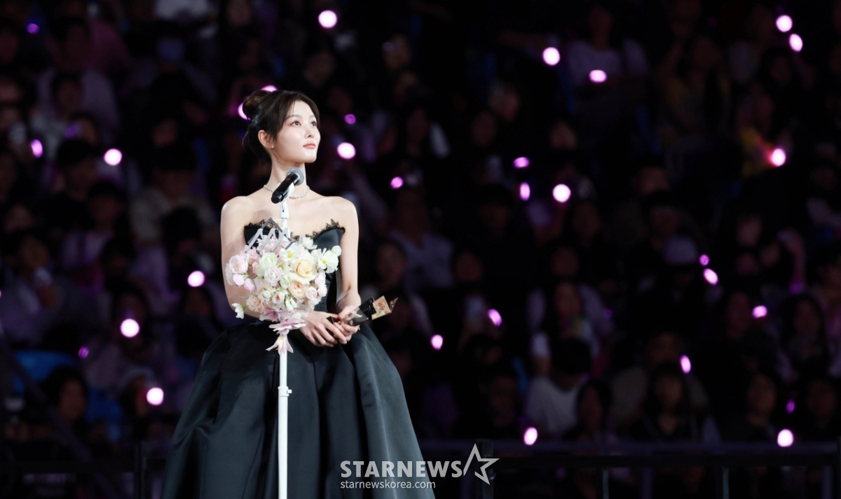 배우 김유정이 6일 가오슝 내셔널 스타디움에서 진행된 스타뉴스 주최 '10주년 아시아 아티스트 어워즈 2025(10th Anniversary Asia Artist Awards 2025, '10주년 AAA 2025')에서 AAA Best Artist 상을 받고 수상소감을 말하고 있다.