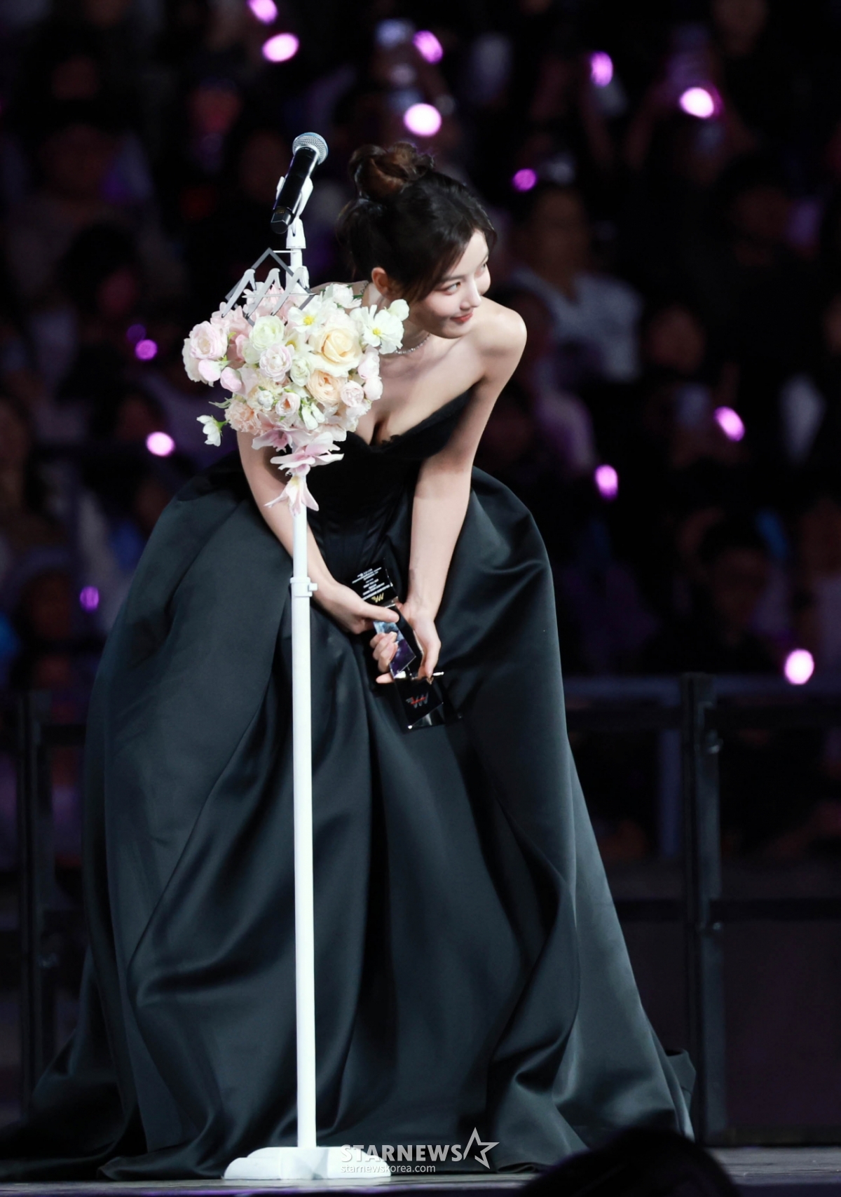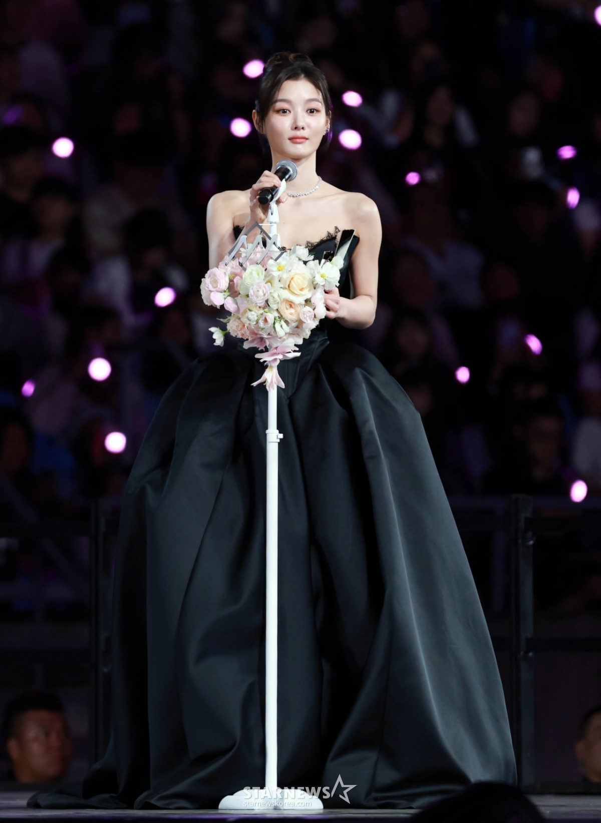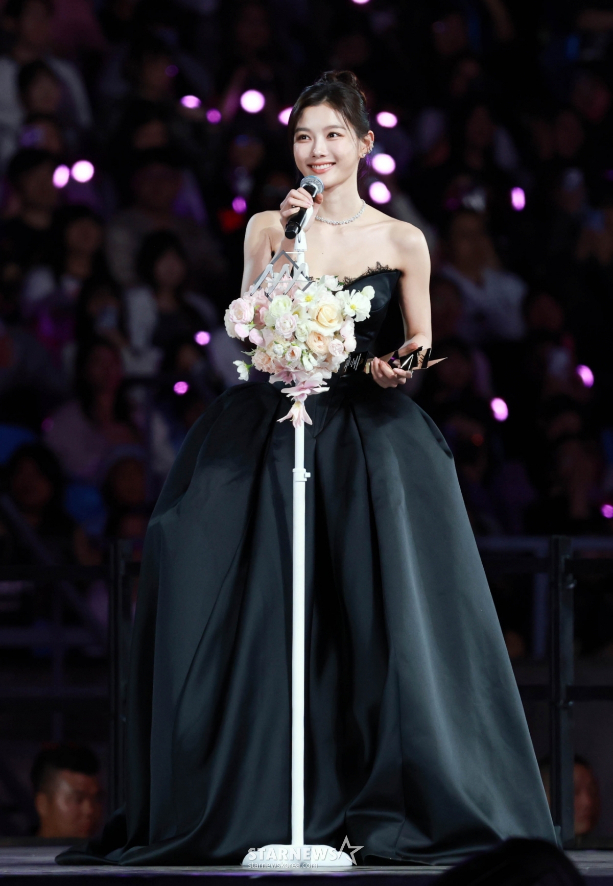 배우 김유정이 6일 가오슝 내셔널 스타디움에서 진행된 스타뉴스 주최 '10주년 아시아 아티스트 어워즈 2025(10th Anniversary Asia Artist Awards 2025, '10주년 AAA 2025')에서 AAA Best Artist 상을 받고 수상소감을 말하고 있다.