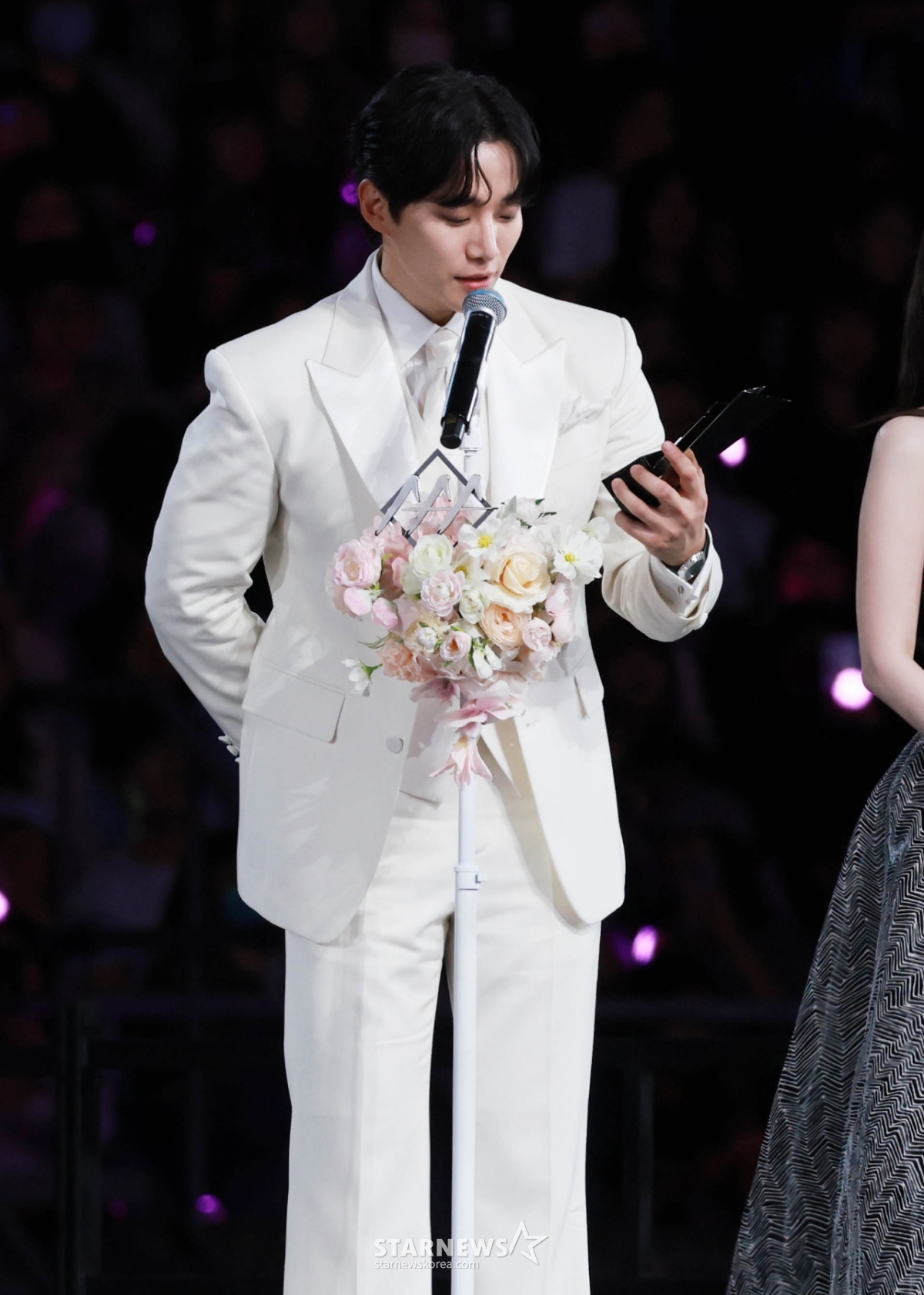 배우 이준호가 6일 가오슝 내셔널 스타디움에서 진행된 스타뉴스 주최 '10주년 아시아 아티스트 어워즈 2025(10th Anniversary Asia Artist Awards 2025, '10주년 AAA 2025')에서 AAA Fabulous상을 받고 수상소감을 말하고 있다.