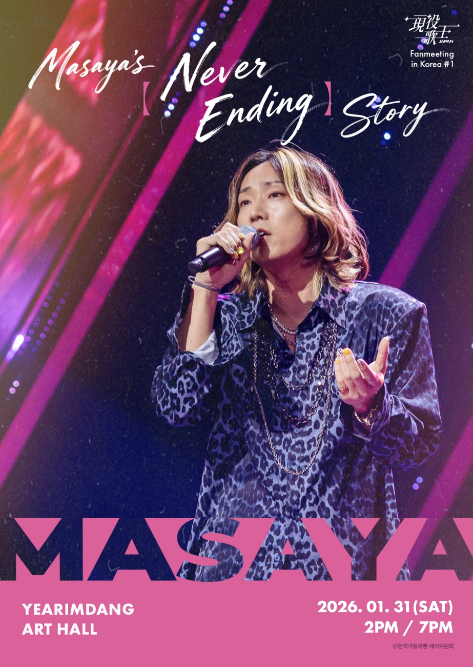 크레아 스튜디오는 "마사야의 팬미팅은 마사야 개인에게는 한국에서의 첫 단독 무대이면서, 2026년도 진행될 '현역가왕 재팬' TOP7 멤버들의 팬미팅 시리즈 프로젝트의 출발점이 될 것"이라며 "한국 팬들을 위한 마사야의 특별한 애정과 열정이 터져 나올 팬미팅 '네버엔딩 스토리'를 기대해 달라"라고 밝혔다.