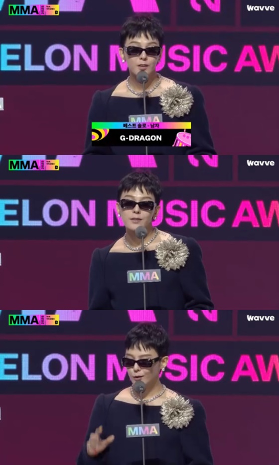 지드래곤은 "MMA에서는 남자 솔로상을 처음 받는 거 같다. 다시 한번 팬들에게 감사하다"는 수상 소감을 전했다.