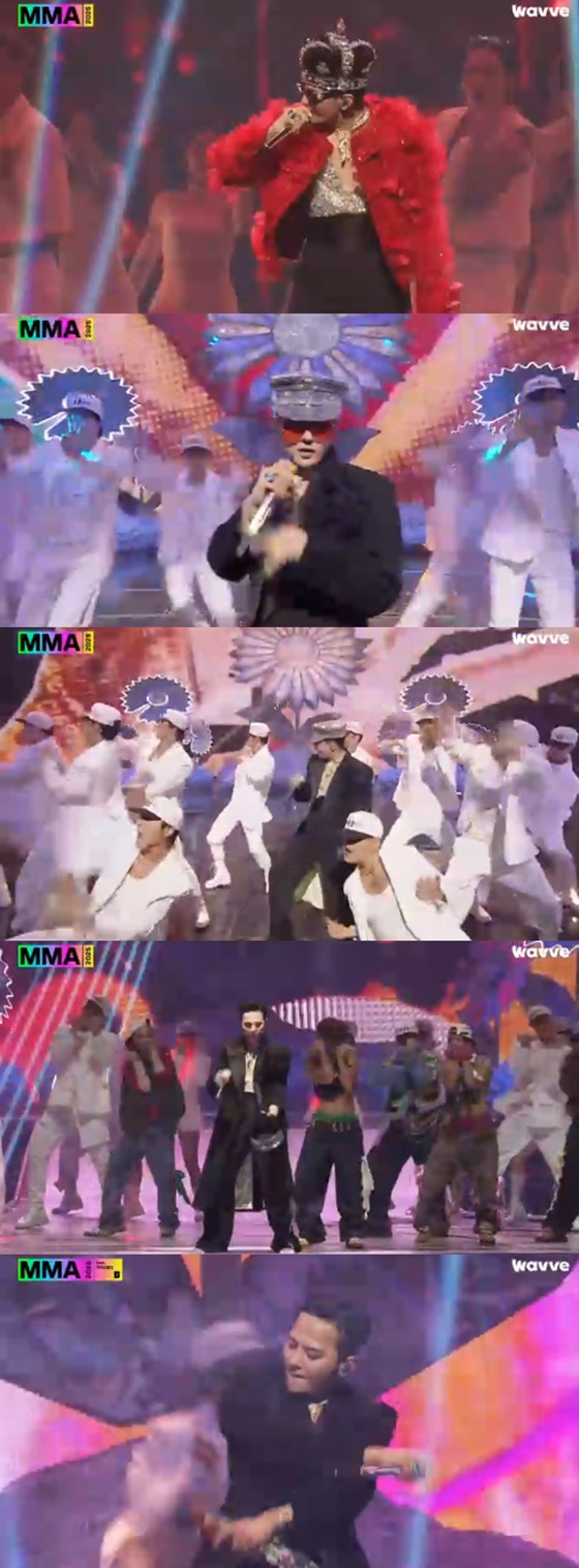 최근 라이브 논란에 휘말렸던 가수 지드래곤이 'MMA 2025'에서 화려한 무대를 선보였다.