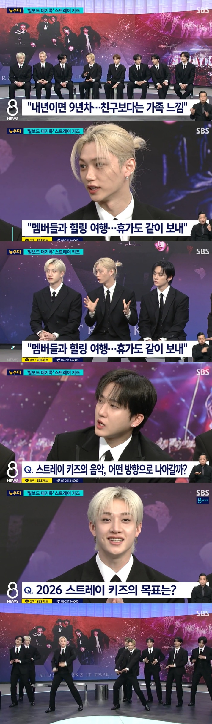 스트레이 키즈는 21일 방송된 'SBS 8뉴스' 인터뷰 코너에 출연, 이현영 앵커와 이야기를 나눴다. 스트레이 키즈 멤버 8명 완전체가 출연하는 방송 인터뷰는 이번이 처음이다.