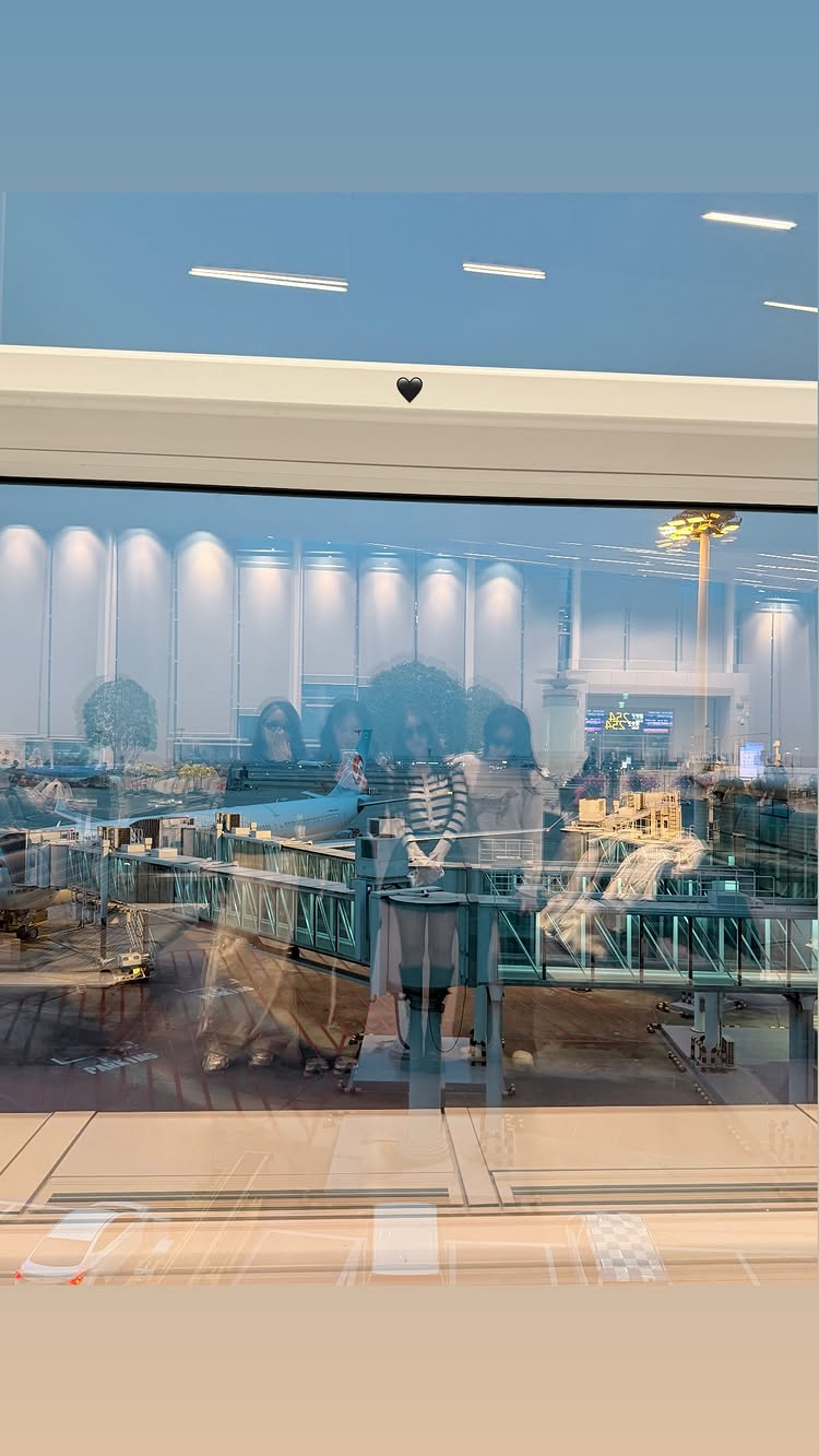 지연은 22일 자신의 계정에 검은색 하트 이모티콘을 적으며 티아라 멤버들과 공항 출국길에 있는 사진을 올렸다.