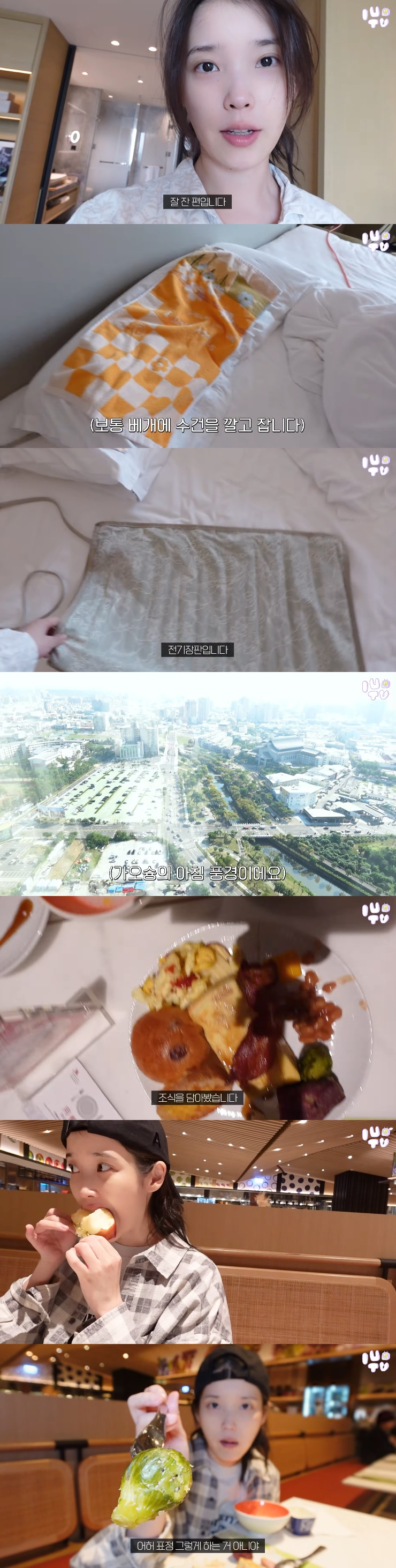가오슝에 도착한 아이유는 호텔에서 자고 일어난 뒤 자신이 가져온 베개수건과 미니 전기장판을 소개해 친근함을 더했다. 조식을 먹으러 간 아이유는 "미니 양배추 먹어야 예뻐지는데"라며 또 다시 '폭싹 속았수다'의 상황극을 했다.