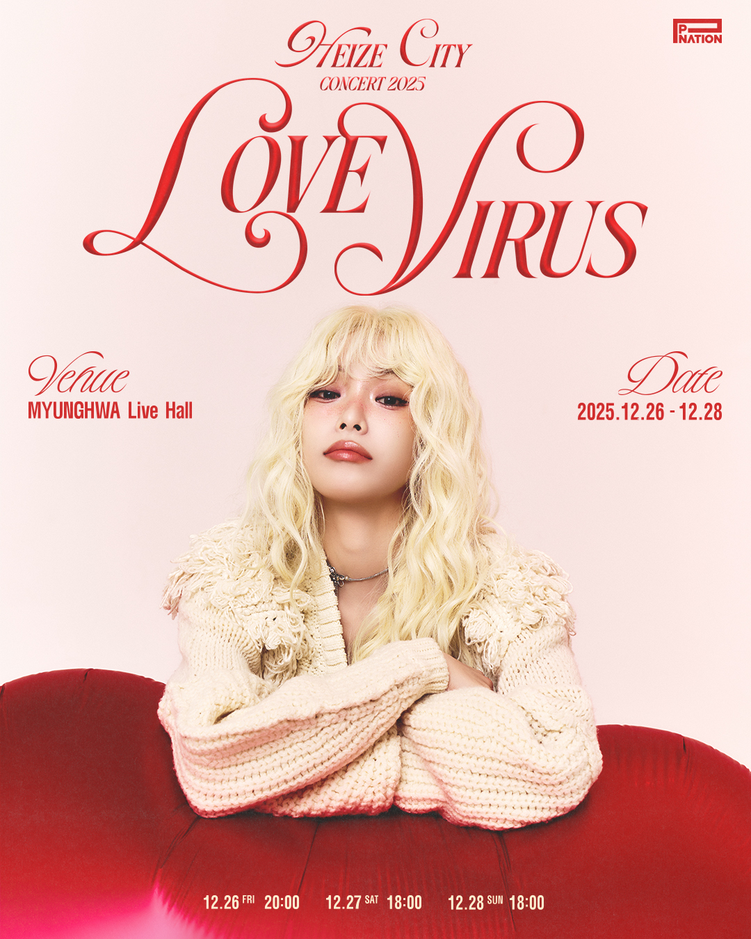 헤이즈는 26일부터 28일까지 서울 영등포구 명화라이브홀에서 '2025 Heize Concert [Heize City : LOVE VIRUS](2025 헤이즈 콘서트 [헤이즈 시티 : 러브 바이러스])'를 개최한다.