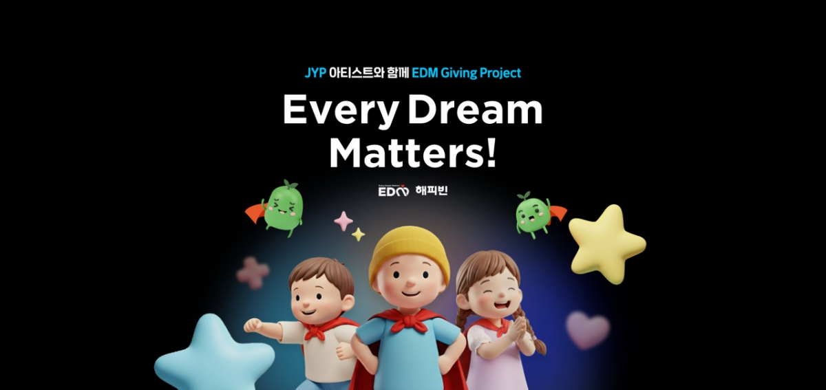 JYP는 올해 4월부터 11월까지 공익 프로젝트 'EDM Giving Project'를 진행했다. JYP 아티스트들의 국내 콘서트 현장에서 운영한 JYP EDM 부스와 해피빈 EDM 콩저금통에 모인 팬들의 기부금을 연말 환아 치료비로 지원하는 프로젝트로, 콘서트 현장 속 아티스트와 팬들의 마음 나눔의 장을 마련해 공연을 따뜻하고 의미 있게 기억할 수 있도록 하는 취지로 펼쳐졌다.