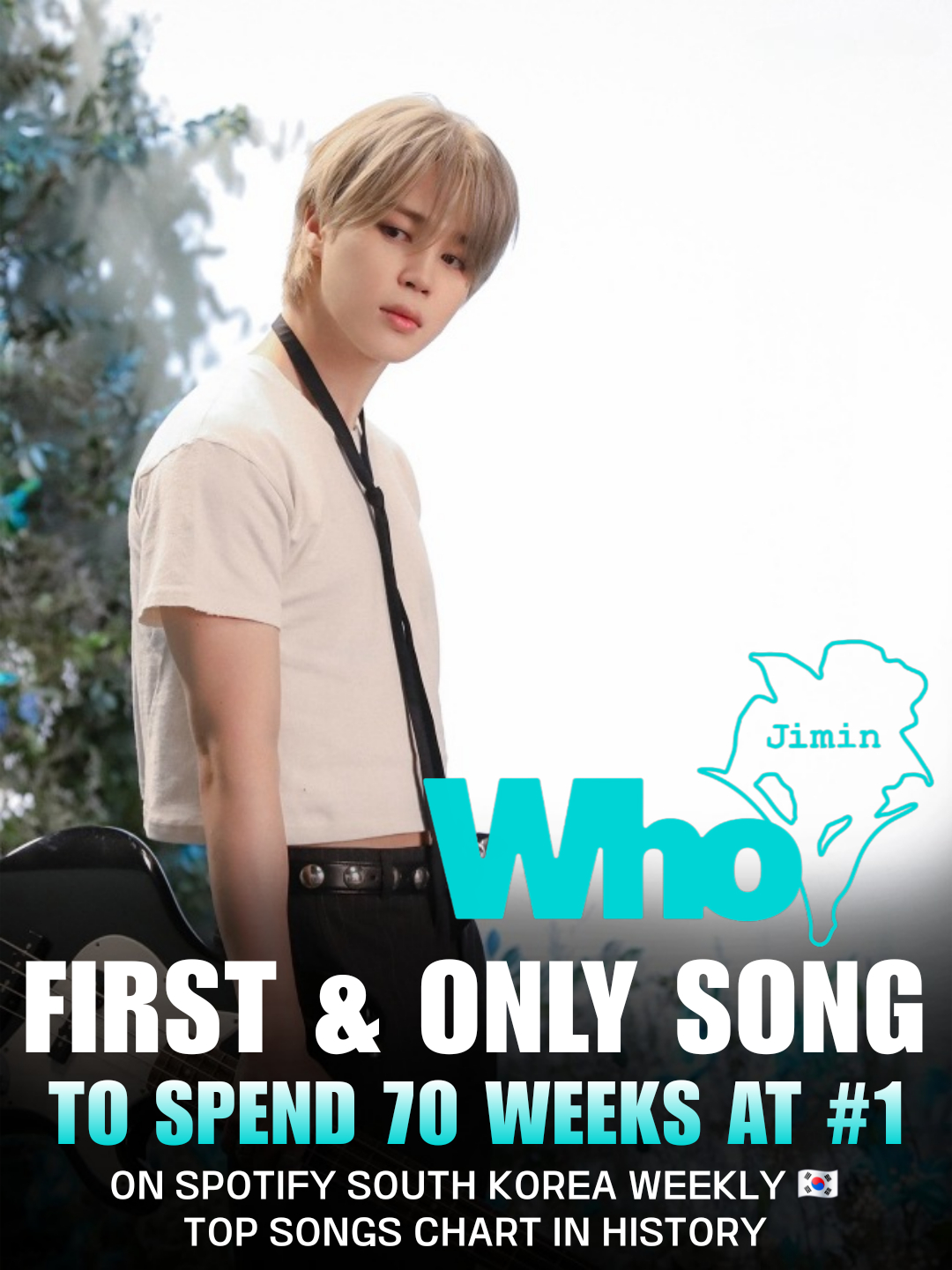 세계 최대 음원 플랫폼 스포티파이(Spotify)의 12월 25일 자 차트 업데이트에 따르면, 지민의 2집 솔로 앨범 'MUSE'(뮤즈) 타이틀곡 'Who'(후)는 스포티파이 한국 '위클리 톱 송' 차트에서 70주째 1위에 올랐다.