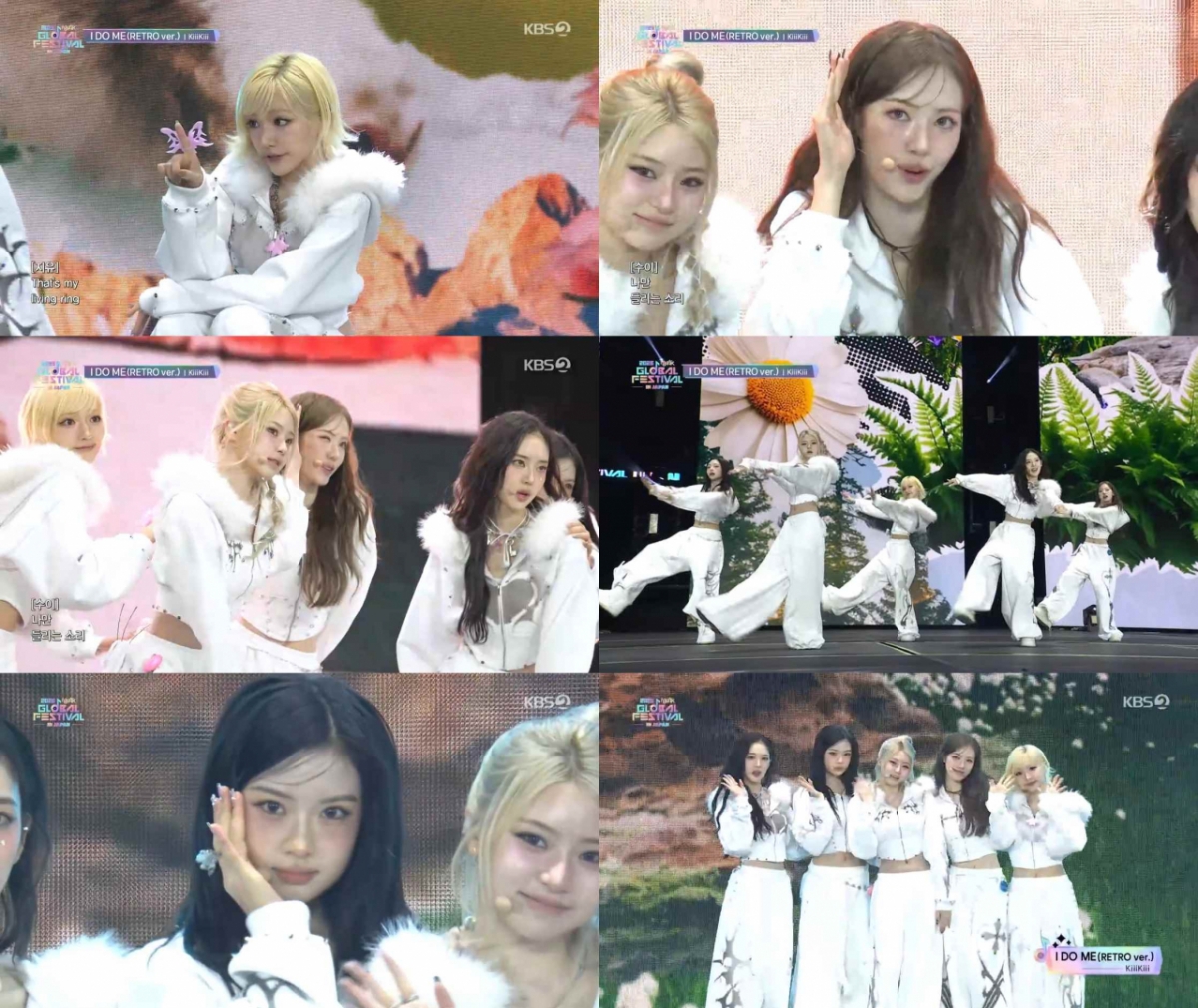 이날 키키는 화이트 톤의 의상으로 맞춰 입어 깨끗하고 밝은 에너지를 전달했다. Y2K 트렌드를 반영해 후드가 달린 크롭 톱과 와이드 팬츠 등을 매치한 키키는 감각적인 LED를 배경으로 신비롭고 경쾌한 분위기의 레트로 버전 '아이 두 미' 무대를 펼쳤다.