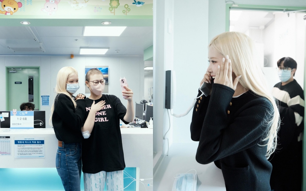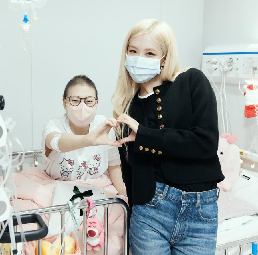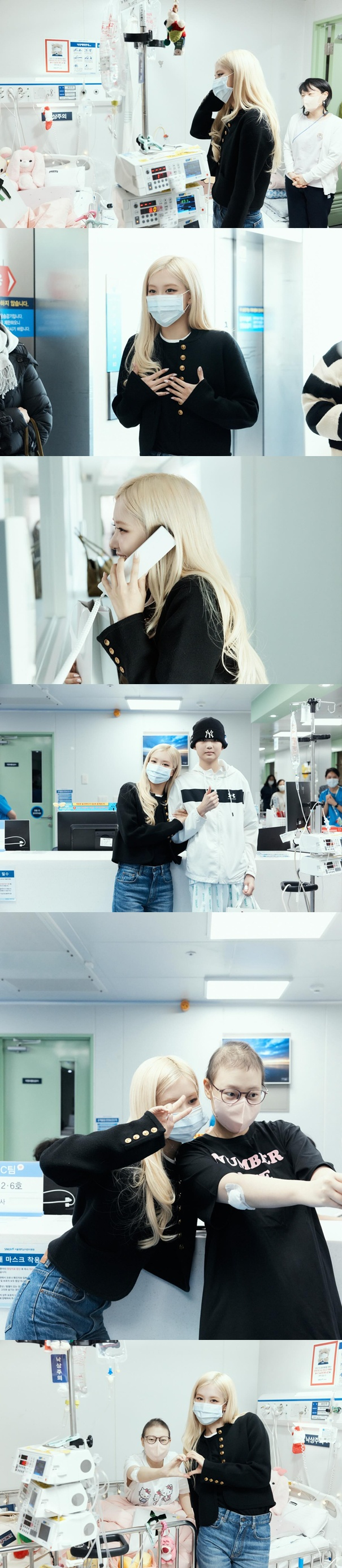 사진 속 로제는 서울대학교어린이병원에 방문해 난치병 아이들을 응원한 모습이었다. 로제는 난치병 아이들에게 선물을 주며 하트 포즈를 취하면서 사진을 찍는 등의 시간을 가졌다.