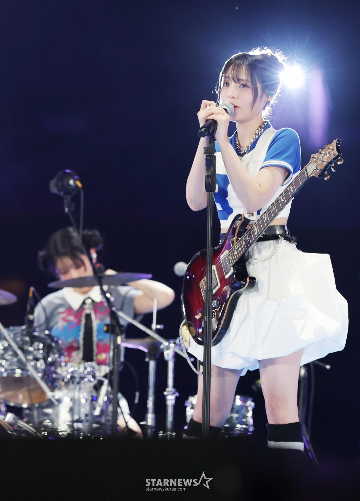 밴드 QWER 히나가 7일 가오슝 내셔널 스타디움에서 진행된 스타뉴스 주최 '10주년 아시아 아티스트 어워즈 2025(10th Anniversary Asia Artist Awards 2025, '10주년 AAA 2025')를 기념하는 'ACON 2025'에서 멋진 무대를 선보이고 있다. /2025.12.07 /사진=이동훈 photoguy@