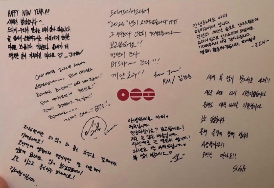 '21세기 비틀즈' 방탄소년단의 컴백 날짜가 3월 20일로 암시됐다. 위버스 멤버와 국내 팬들에게 당일 배송으로 전달된 새해 엽서 세트에는 RM, 진, 슈가, 제이홉, 지민, 뷔, 정국의 개인 친필 메시지가 담겨 있었고 엽서 전면에 인쇄된 낯선 로고 옆 2026.3.20이라는 날짜가 사실상 BTS의 완전체 컴백을 사실상 의미한 것으로 풀이되고 있다. 신곡 발표와 함께 대규모 월드투어에 곧바로 돌입하며 방탄소년단의 2026년 활동이 본격화될 것 같다.