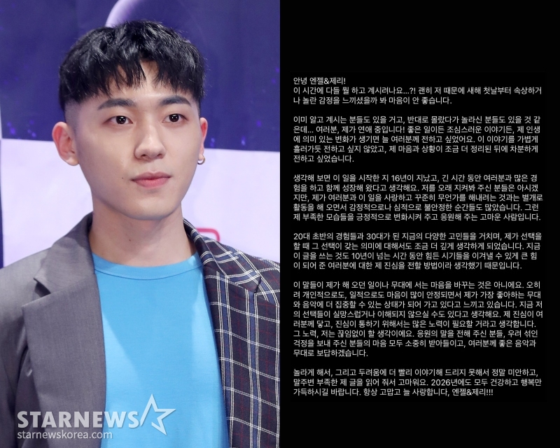 끝으로 창조는 "놀라게 해서, 그리고 두려움에 더 빨리 이야기해 드리지 못해서 정말 미안하고 말주변 부족한 나의 글을 읽어 줘서 고맙다. 2026년에도 모두 건강하고 행복만 가득하시길 바란다"라고 전했다.