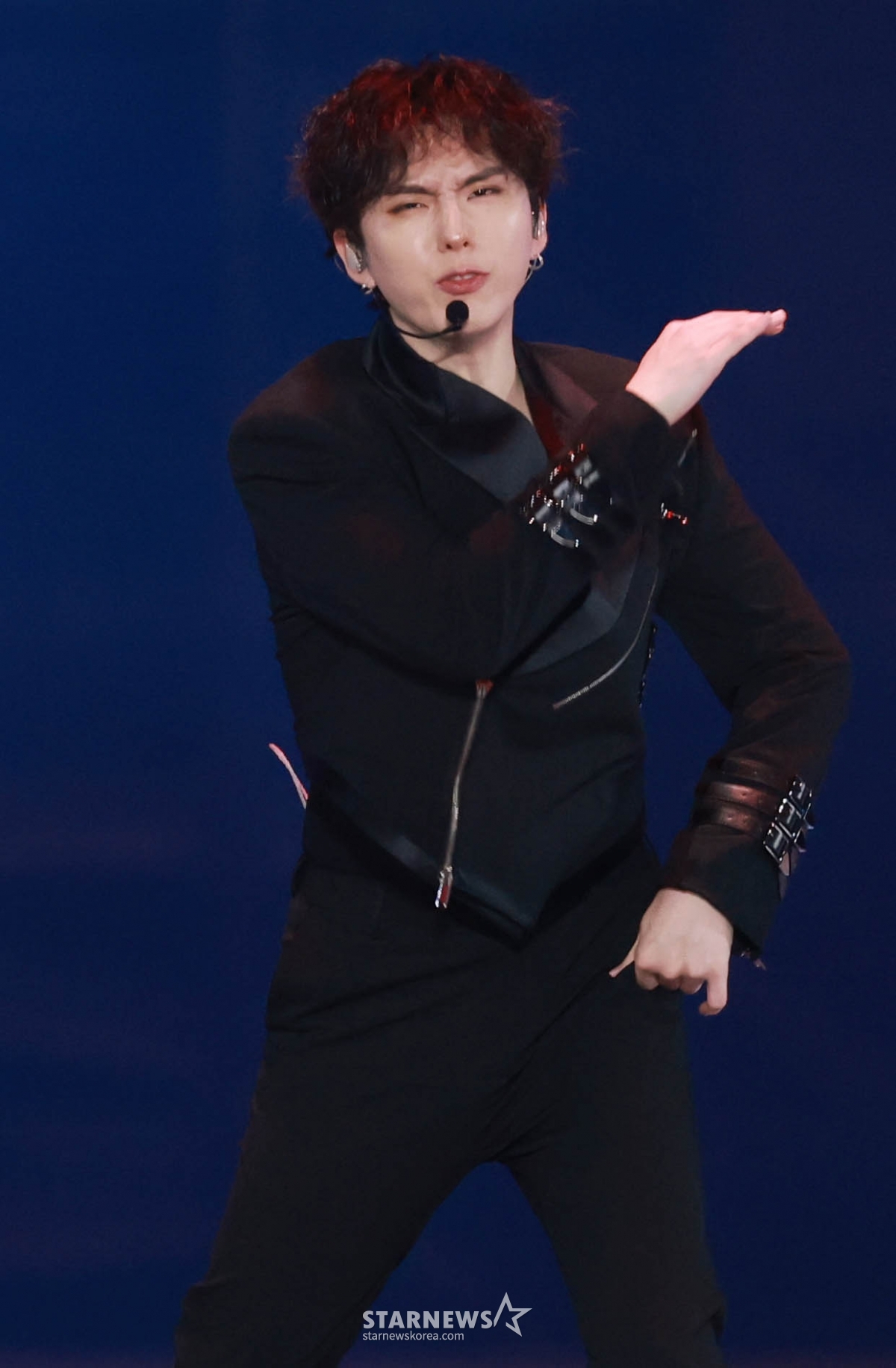 그룹 몬스타엑스(MONSTA X)기현이 6일 가오슝 내셔널 스타디움에서 진행된 스타뉴스 주최 '10주년 아시아 아티스트 어워즈 2025(10th Anniversary Asia Artist Awards 2025, '10주년 AAA 2025')에서 멋진 무대를 선고이고 있다.