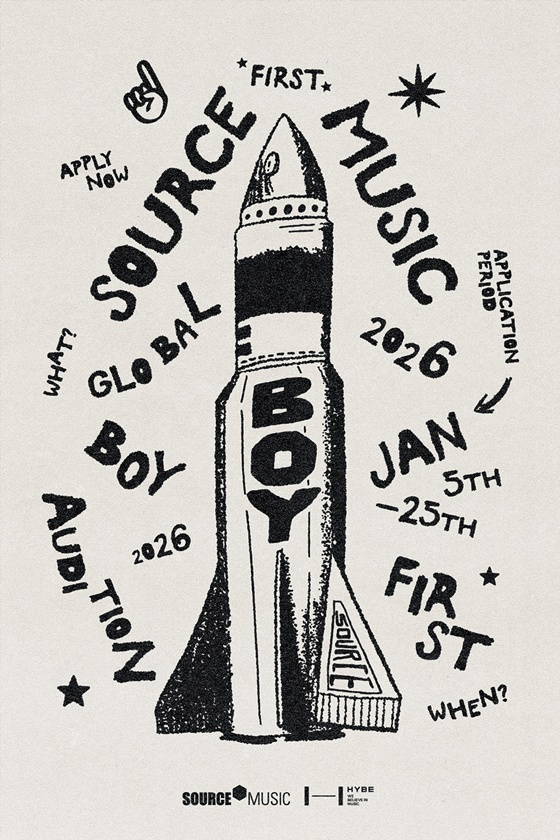 지난 5일 쏘스뮤직은 공식 홈페이지에 '쏘스뮤직 2026년 글로벌 보이 오디션'(SOURCE MUSIC 2026 GLOBAL BOY AUDITION) 개최 소식을 알렸다. 오디션 접수는 1월 5일부터 25일까지 약 3주 간 온라인으로 진행된다. 지원 분야는 노래, 랩, 댄스 등 분야 제한 없이 자신의 매력과 개성을 보여줄 수 있는 모든 형태가 가능하다. 국적과 거주지에 관계없이 2008년 이후 출생한 남성이라면 누구나 참여할 수 있다.