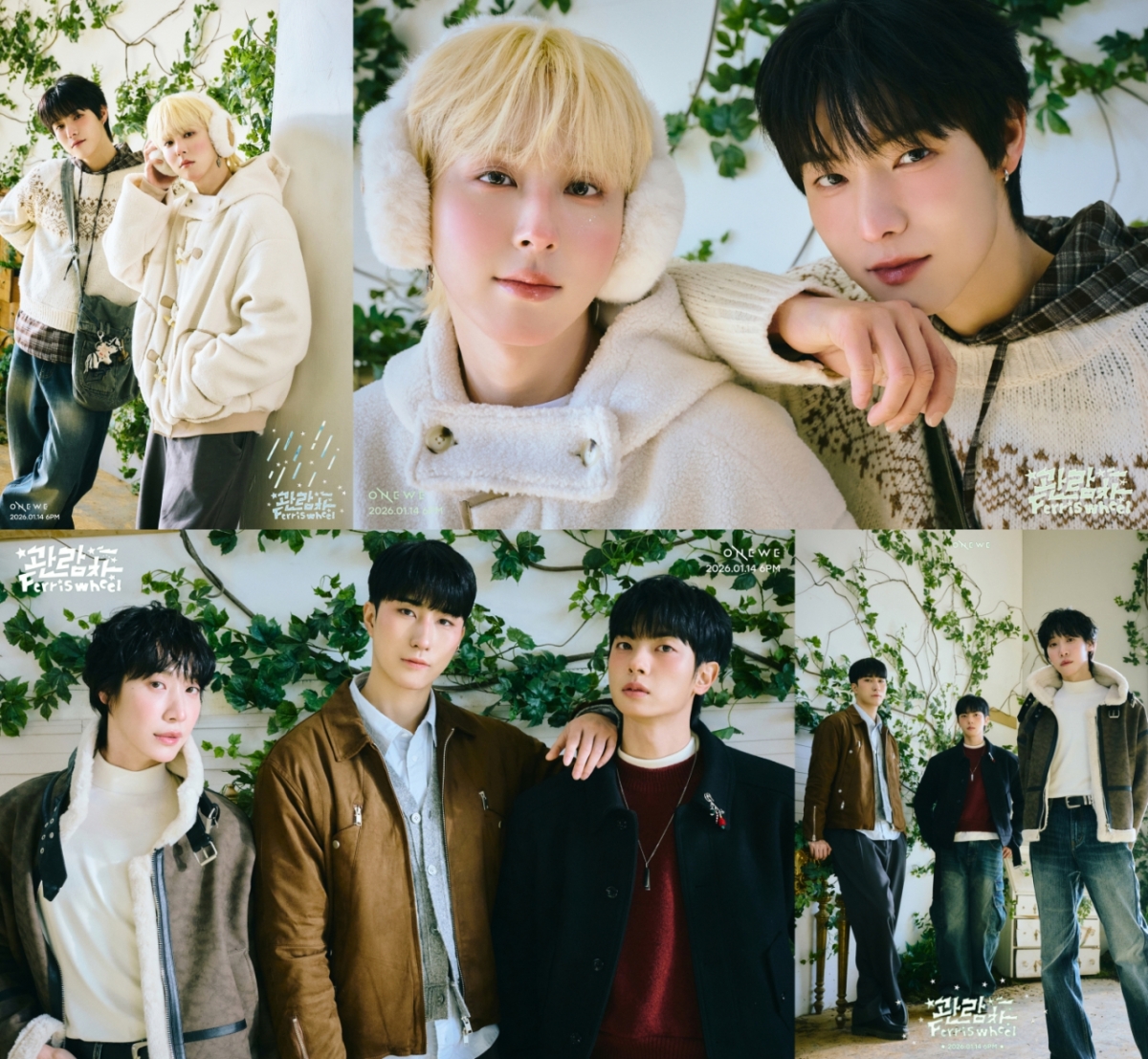 원위(용훈, 강현, 하린, 동명, 기욱)는 6일 0시 공식 SNS를 통해 디지털 싱글 '관람차 (Ferris wheel)'의 단체 및 유닛 콘셉트 포토를 게재했다.