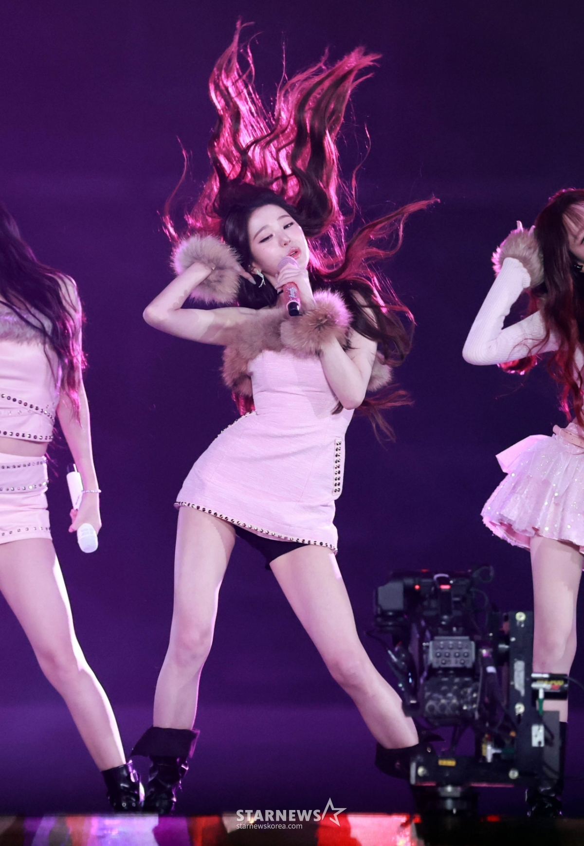 그룹 아이브(IIVE) 장원영이 6일 가오슝 내셔널 스타디움에서 진행된 스타뉴스 주최 '10주년 아시아 아티스트 어워즈 2025(10th Anniversary Asia Artist Awards 2025, '10주년 AAA 2025')에서 멋진 무대를 선고이고 있다.