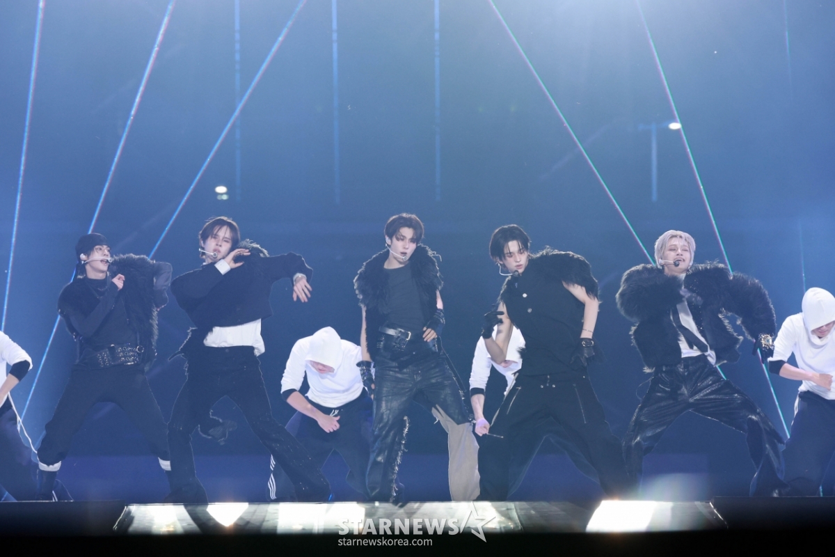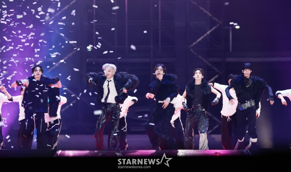 그룹 투어스(TWS)가 6일 가오슝 내셔널 스타디움에서 진행된 스타뉴스 주최 '10주년 아시아 아티스트 어워즈 2025(10th Anniversary Asia Artist Awards 2025, '10주년 AAA 2025')에서 멋진 무대를 선보이고 있다.