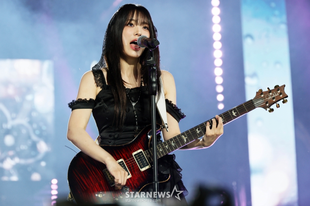 그룹 큐더블유이알(QWER) 쵸단, 마젠타, 히나, 시연이 6일 가오슝 내셔널 스타디움에서 진행된 스타뉴스 주최 '10주년 아시아 아티스트 어워즈 2025(10th Anniversary Asia Artist Awards 2025, '10주년 AAA 2025')에서 멋진 무대를 선보이고 있다.
