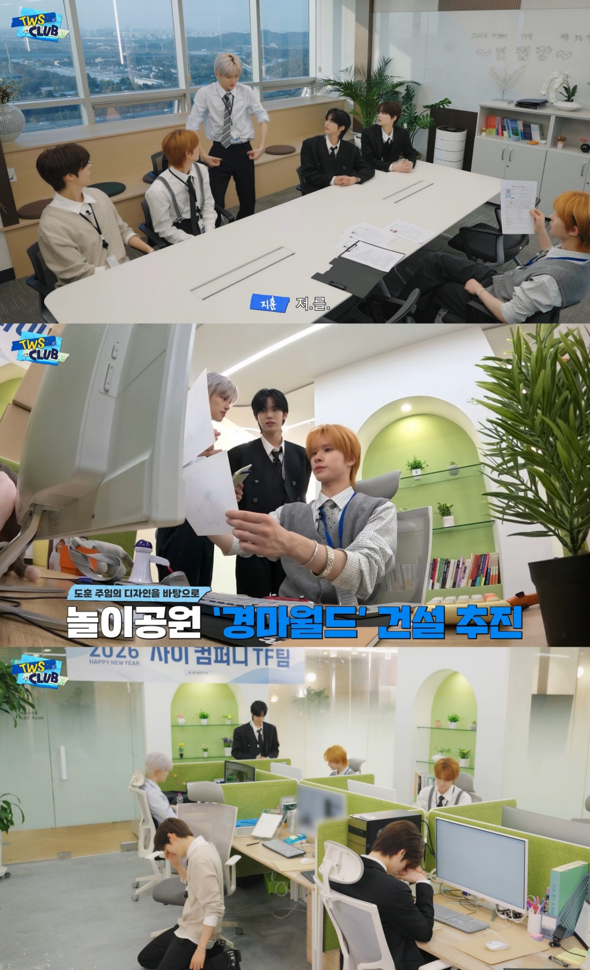 그룹 TWS(투어스)가 오피스 예능을 통해 업그레이드된 예능감을 뽐냈다.