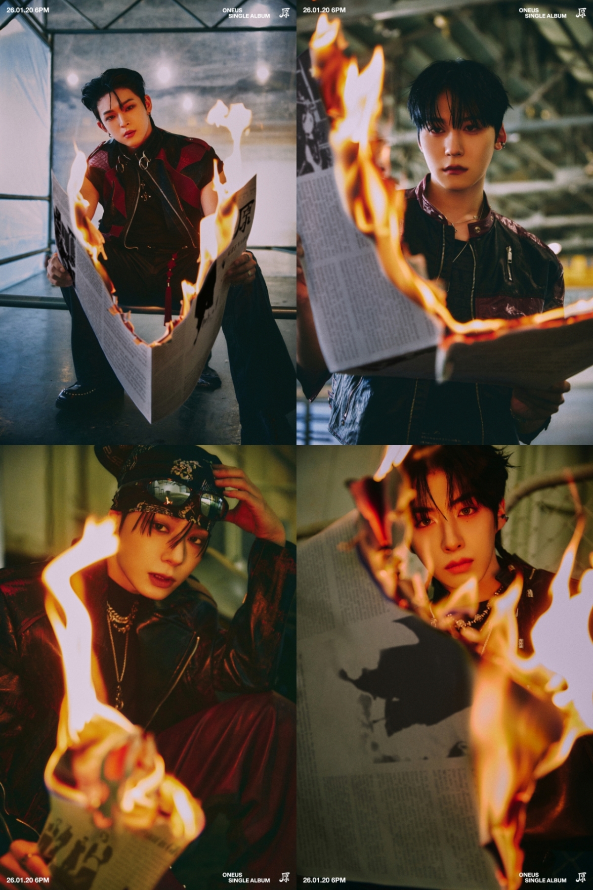 멤버별 개성이 뚜렷한 콘셉트 포토도 베일을 벗었다. 원어스는 세련된 퓨전 한복과 시크한 래더 소재 의상을 자유롭게 넘나들며 남다른 콘셉트 소화력을 입증했다. 불에 탄 신문지 등 조명의 명암을 활용해 몰입도를 극대화하며 컴백 기대감을 높였다.
