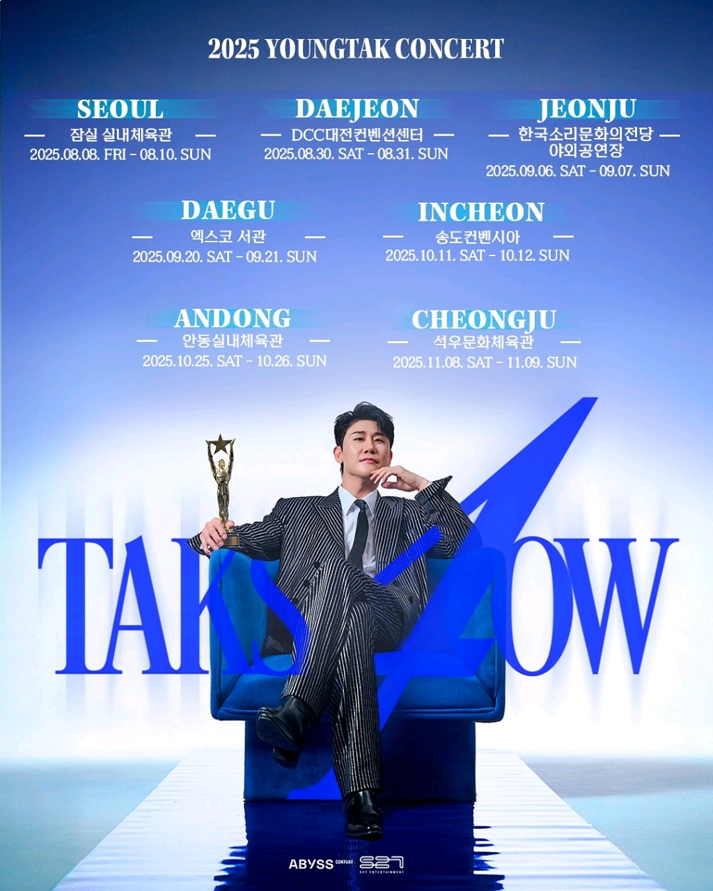 'TAK SHOW4'는 2025년 8월 서울 잠실실내체육관에서 시작해 대전, 전주, 대구, 인천, 안동, 청주 등 전국 7개 도시를 순회했다. 지난 11일 열린 앙코르 공연을 끝으로 대단원의 막을 내렸다. 이번 투어의 특징은 아티스트 영탁과 팬모임 '산탁클로스'가 함께한 문화 복지 나눔 활동이다.