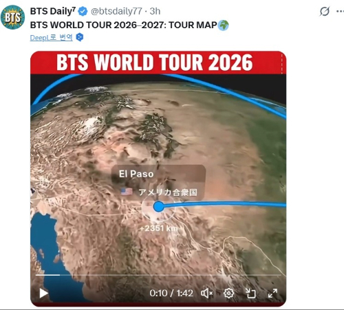 남미 전문 매체 레메즈클라는 "BTS가 2026~27년 월드투어를 발표했다. 남미 날짜는 이렇다"며 콜롬비아, 페루, 칠레, 아르헨티나, 브라질 일정을 정리했다. 일본 도쿄 위켄더는 "BTS가 일본에서 2026년 월드투어를 발표했다. 티켓 구하는 법은 이렇다"며 4월 17~18일 도쿄돔 공연을 안내했다.