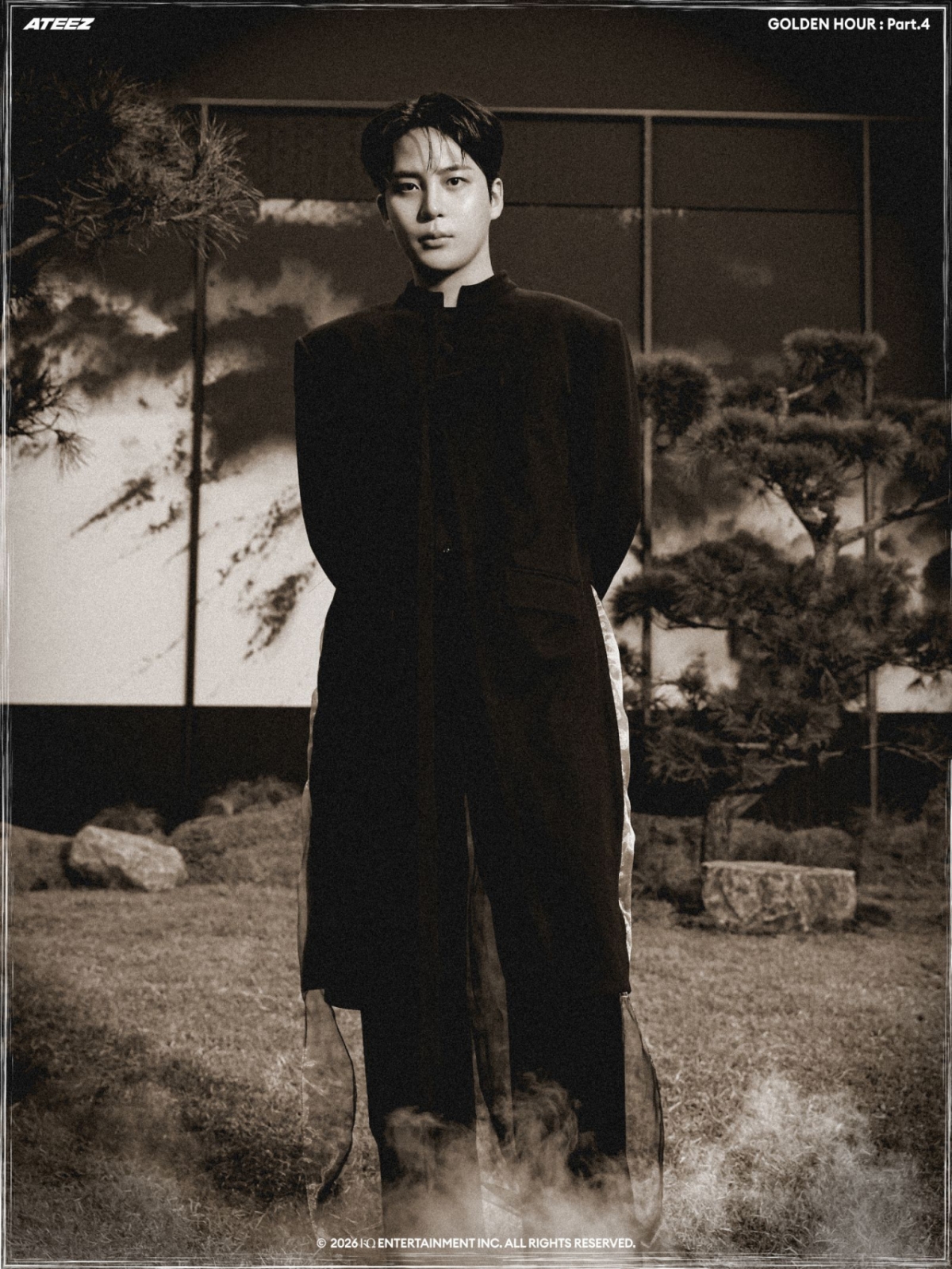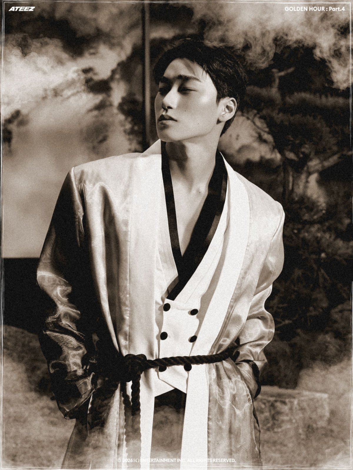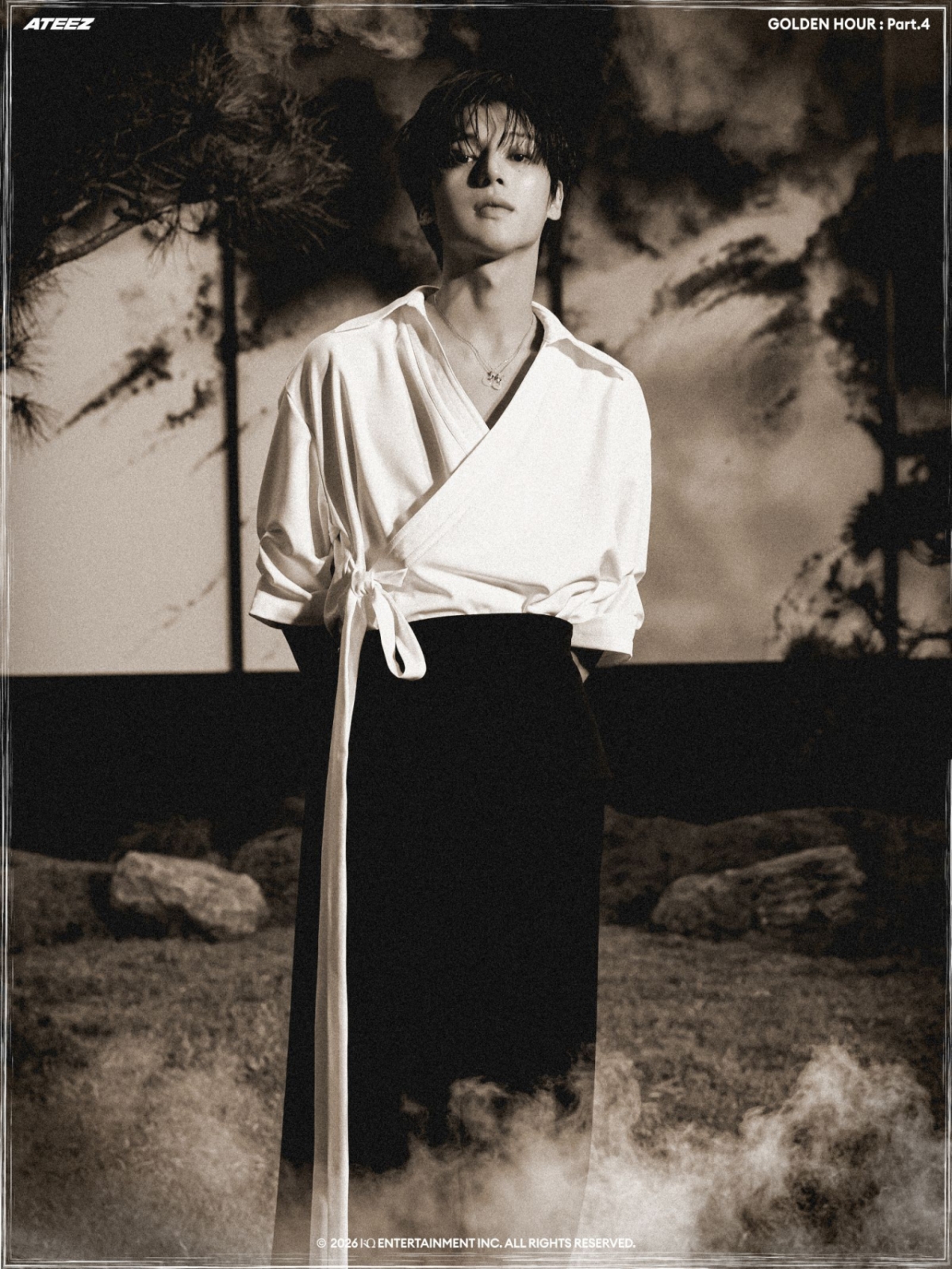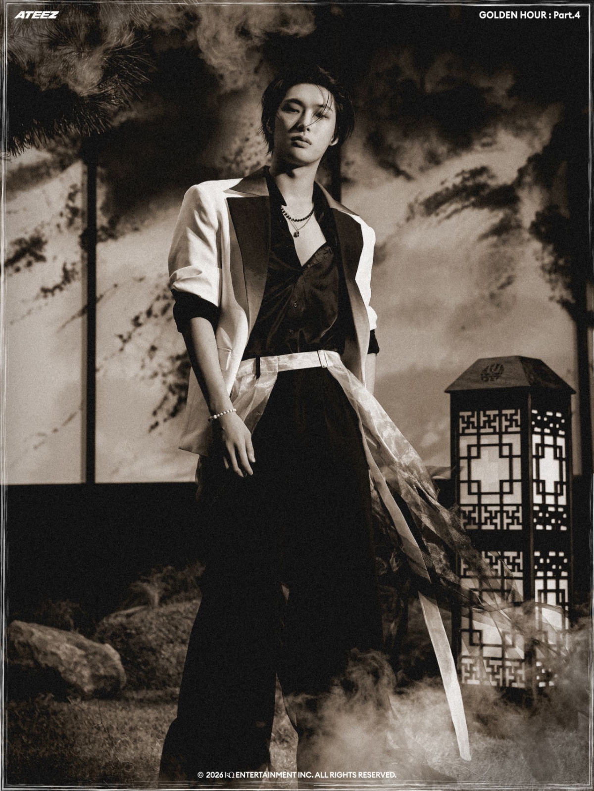 공개된 콘셉트 포토 속 에이티즈는 한 폭의 동양화를 떠올리게 하는 모노톤의 분위기로 깊은 인상을 남긴다. 동양적 실루엣을 현대적으로 재해석한 의상과 정적인 표정, 절제된 색감이 어우러지며 시선을 사로잡았다.