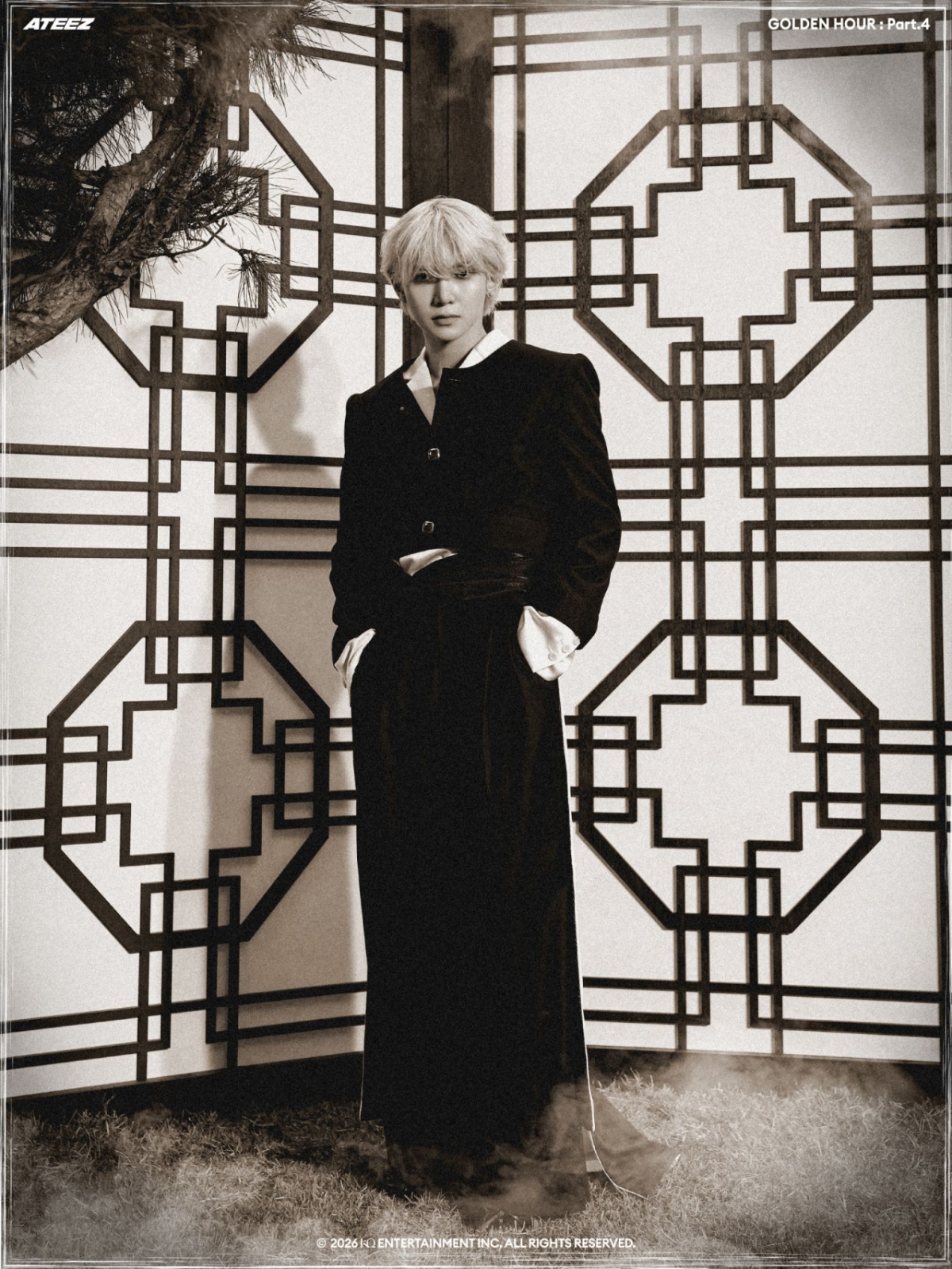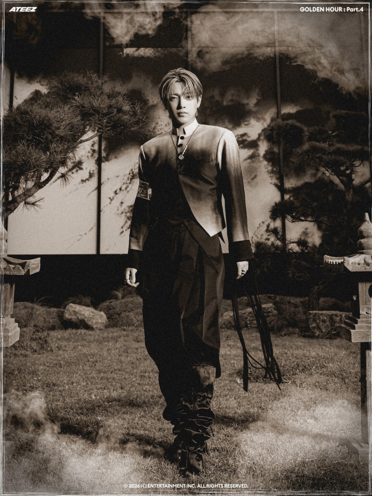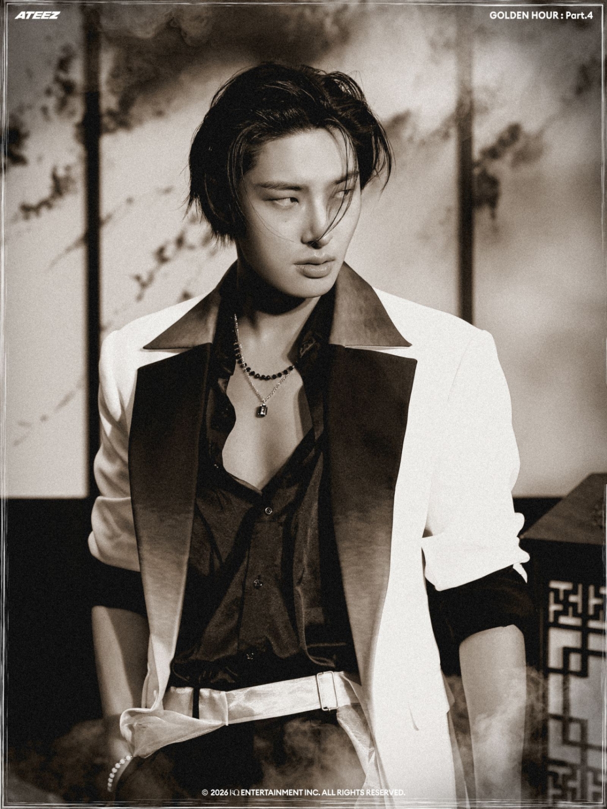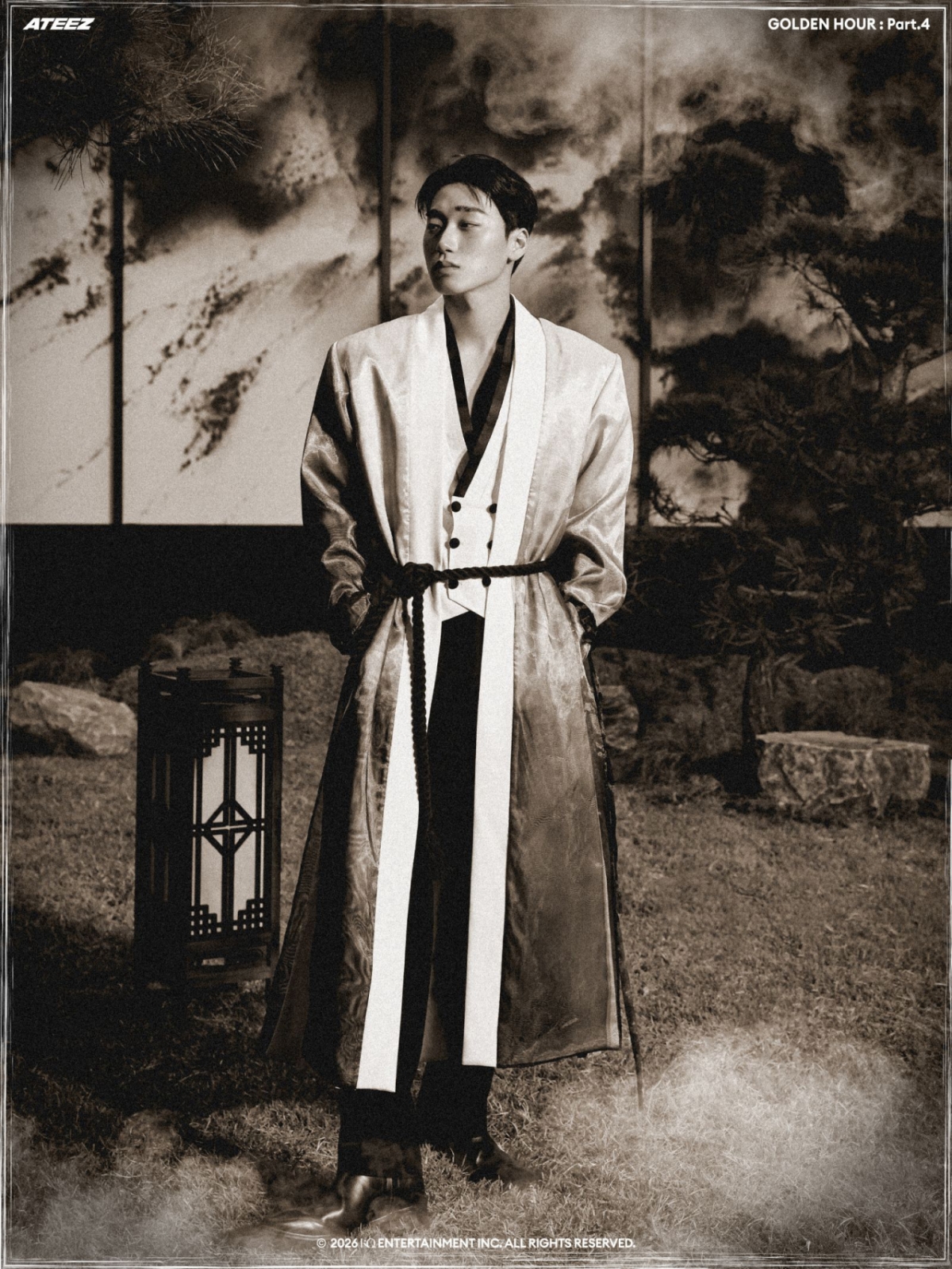 공개된 콘셉트 포토 속 에이티즈는 한 폭의 동양화를 떠올리게 하는 모노톤의 분위기로 깊은 인상을 남긴다. 동양적 실루엣을 현대적으로 재해석한 의상과 정적인 표정, 절제된 색감이 어우러지며 시선을 사로잡았다.