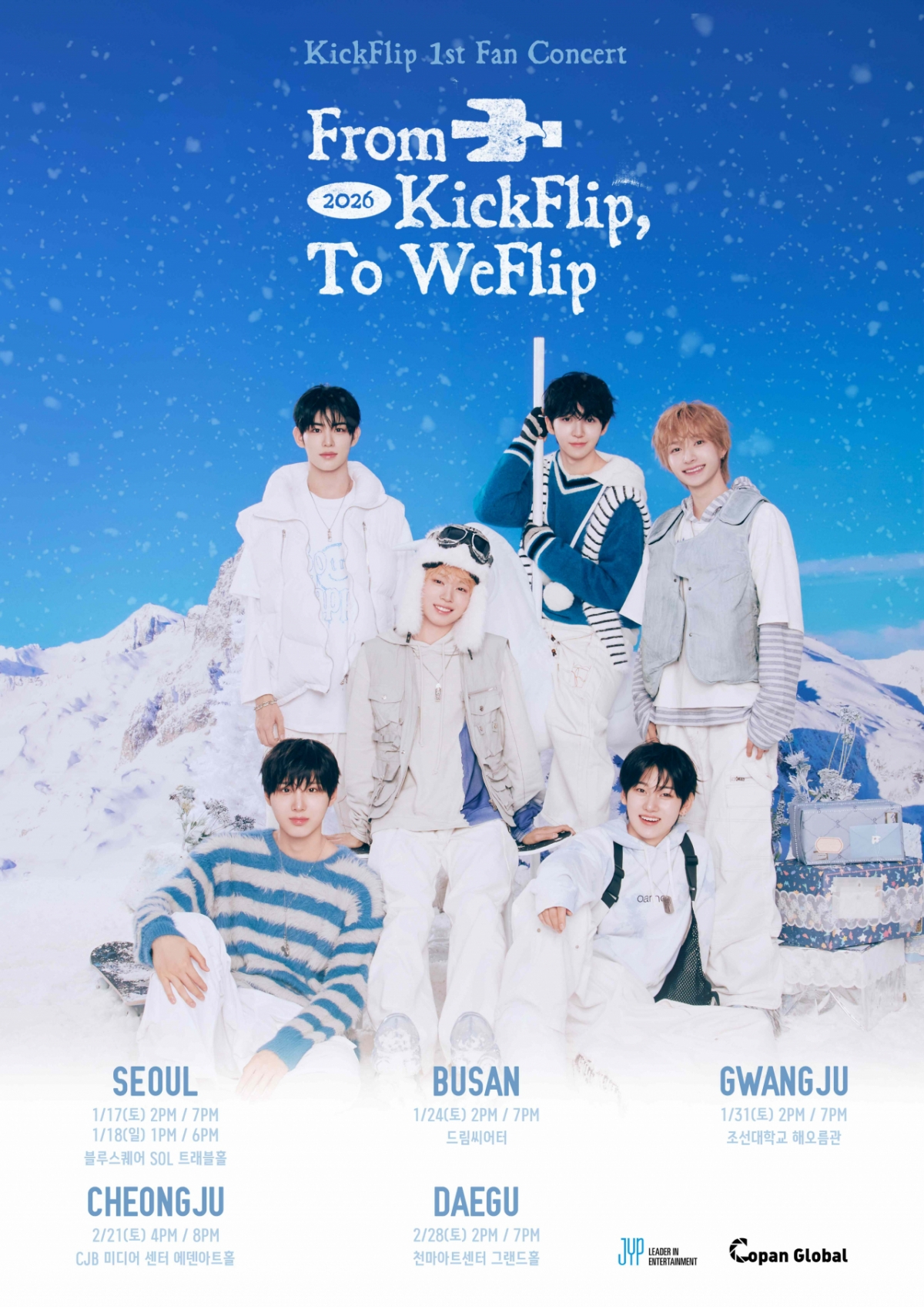 데뷔 1주년을 맞아 팬들에게 음악 선물을 건넨 킥플립은 1월 17일~18일 서울 공연 열기를 몰아 24일 부산, 31일 광주, 2월 21일 청주, 28일 대구까지 전국 5개 도시에서 총 12회 공연 규모의 팬 콘서트 전국 투어를 전개한다. 2025년 총 세 장의 미니 앨범 발매, 주요 글로벌 페스티벌 출연, 여러 가요 시상식 신인상 수상 등 맹활약한 신예 킥플립의 2026년 활동에 귀추가 주목된다.