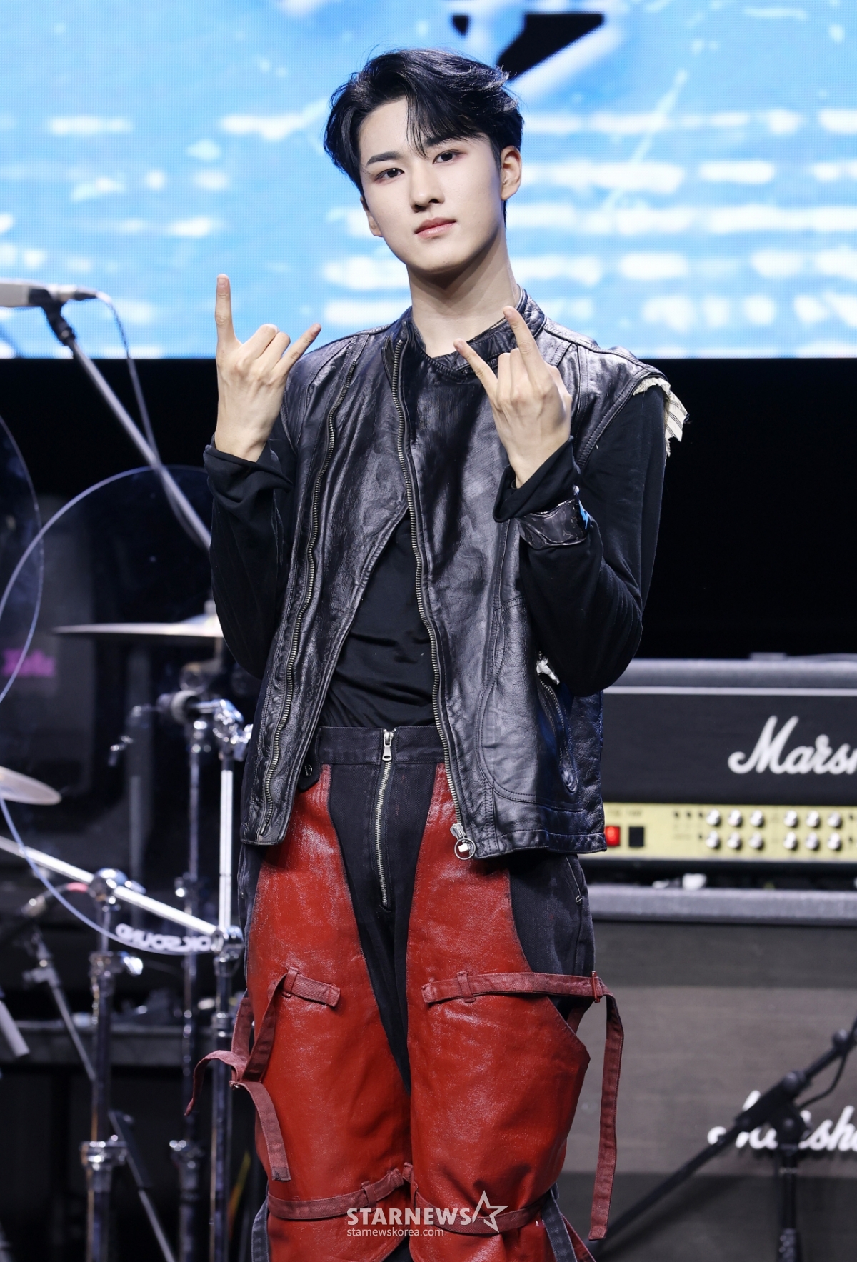밴드 에이엠피 주환이 21일 서울 서대문구 예스24 원더로크홀에서 열린 AxMxP(에이엠피) 첫 번째 미니앨범 'Amplify My Way'(앰플리파이 마이 웨이) 발매 기념 쇼케이스에서 포즈를 취하고 있다. /2026.01.21