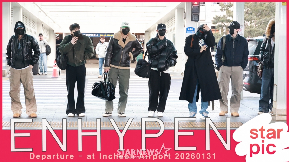 연예K-POP엔하이픈 '멋진 일곱남자들' [★영상]발행 : 2026.01.31 ・ 09:09조회수 :인천국제공항=임성균 기자그룹 엔하이픈(ENHYPEN) 정원, 선우, 희승, 제이크, 성훈, 제이, 니키가 홍콩 일정 차 31일 오전 인천국제공항을 통해 출국하고 있다. 2026.01.31<저작권자 © 스타뉴스, 무단전재 및 재배포 금지>브리핑추천 기사임성균 기자기자홈좋아요연예-K-POP의 인기 급상승 뉴스연예-K-POP의 최신 뉴스AD
