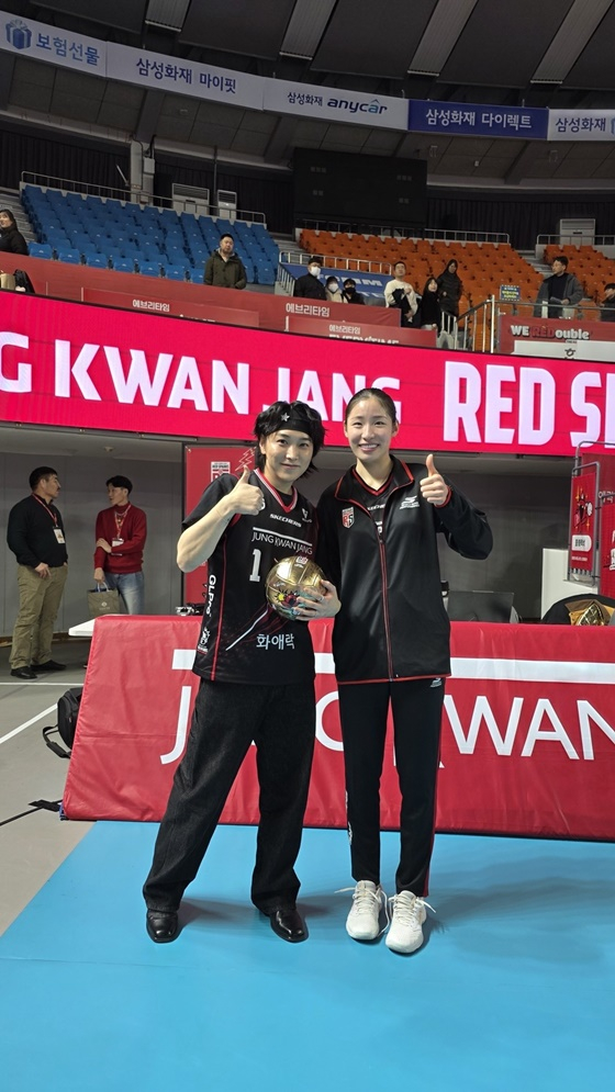 가수 성민이 배구 코트 위에서 특별한 축하 무대를 선보였다.