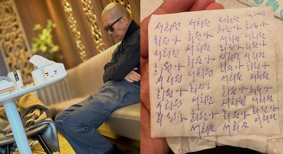이와 함께 공개된 사진 속에는 휴지 한쪽에 '서희원', '희원아'라고 가득 적힌 구준엽의 글이 담겨 먹먹하게 하게 했다. 또 힘없이 생각에 잠긴 구준엽의 모습이 공개돼 눈길을 끌기도 했다.