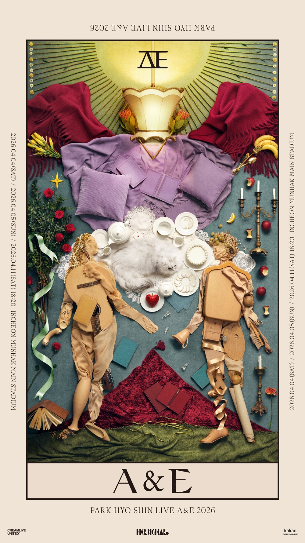 또한 빛나는 태양 아래 서로 마주보고 있는 남녀의 형상은 사람의 모습이지만 전화기, 기타, 솔 등 다양한 사물로 표현해 보는 이의 시선을 사로잡는다. 포스터 위아래로 배치된 'A & E' 문구는 그 의미를 궁금케하며 콘서트에 대한 기대감을 더욱 끌어올린다.