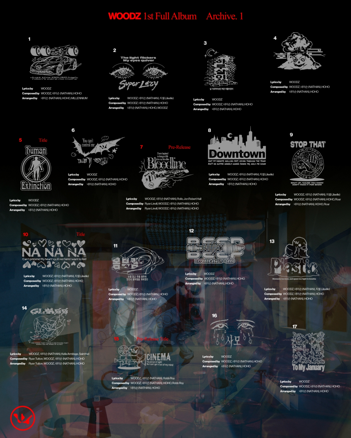 소속사 EDAM엔터테인먼트는 6일 0시 공식 SNS를 통해 우즈의 첫 정규 앨범 'Archive. 1'의 트랙리스트 이미지를 공개했다. 공개된 트랙리스트에 따르면 이번 앨범에는 총 17곡이 수록되며, 타이틀곡으로는 'Human Extinction'과 'NA NA NA'가 이름을 올렸다.