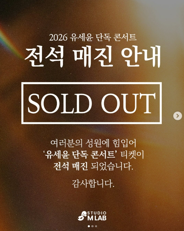 가수 겸 방송인 유세윤이 콘서트 매진 소식을 전했다.