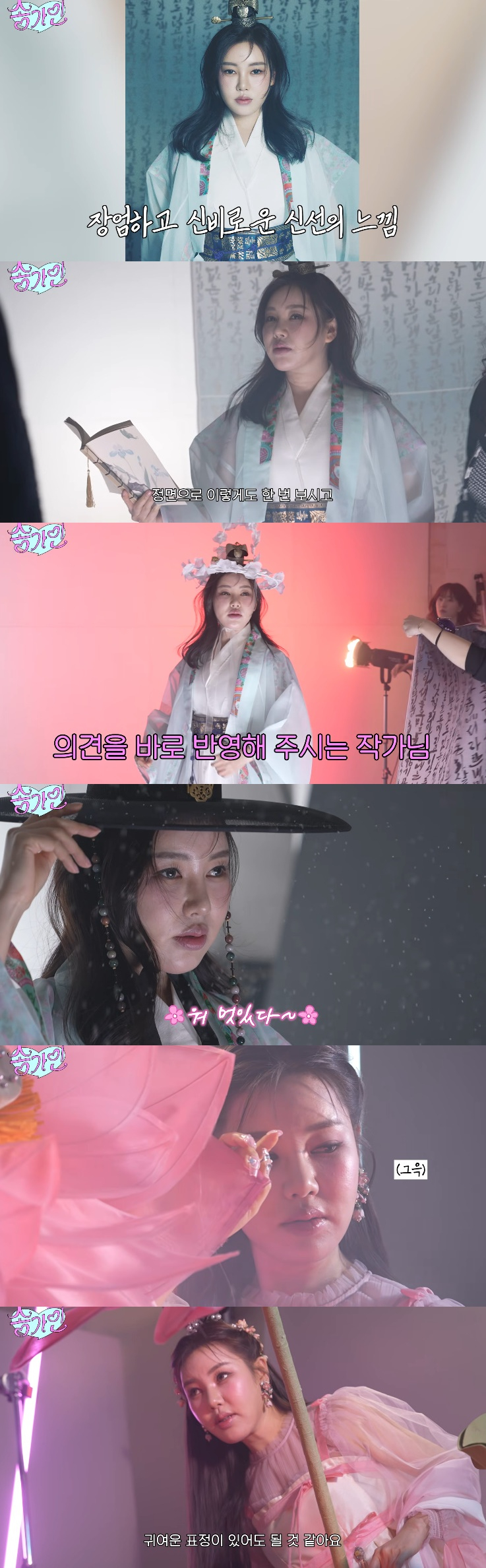사진 속 송가인은 한복 화보를 촬영한 모습이었다. 그는 신선, 선녀, 검객으로 변신해 'K-환생 화보'를 선보였다.