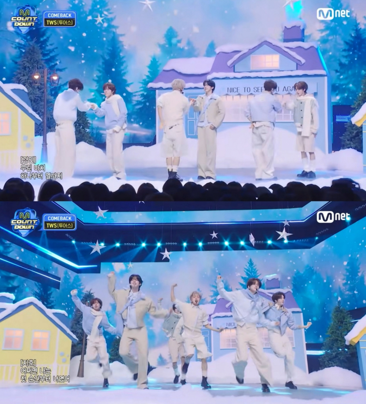 그룹 TWS(투어스)가 '엠카운트다운'을 겨울의 청량함으로 물들였다.